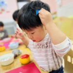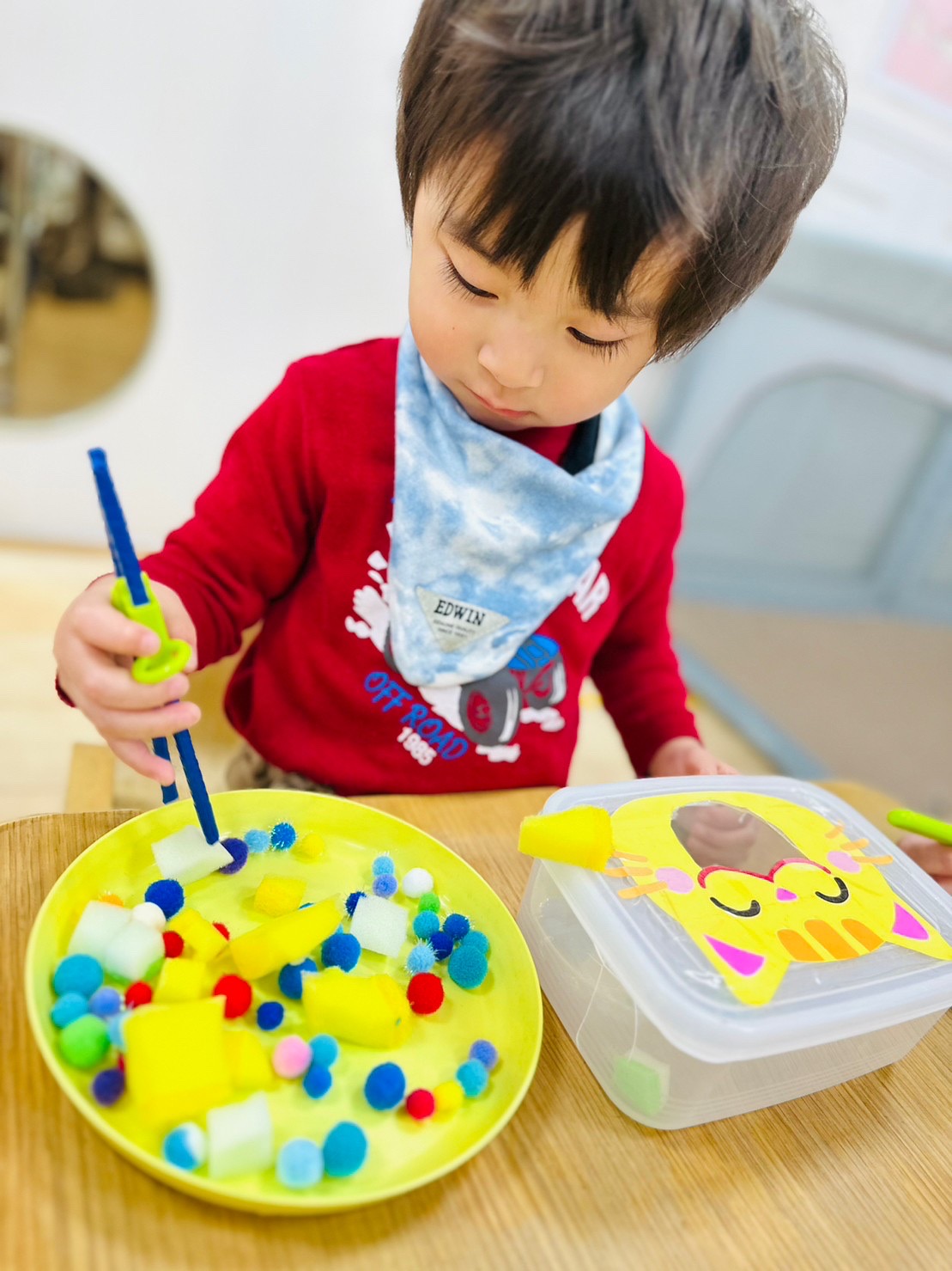お兄さんに憧れて、お箸に挑戦しました✨難しいからこその集中力です✨