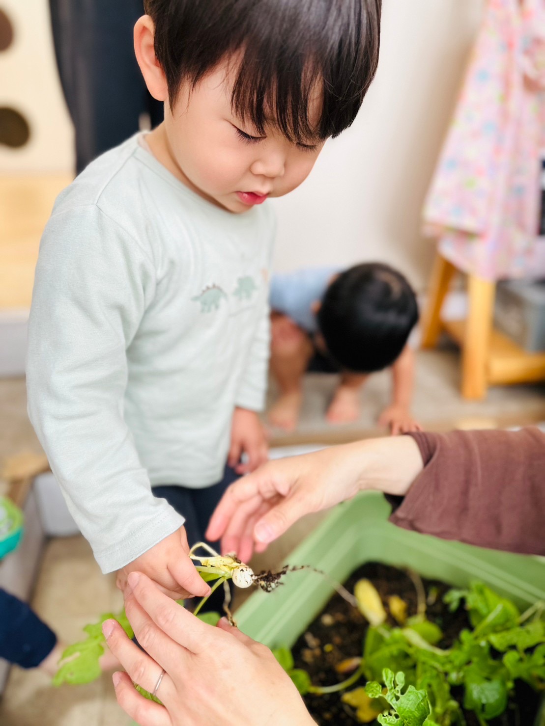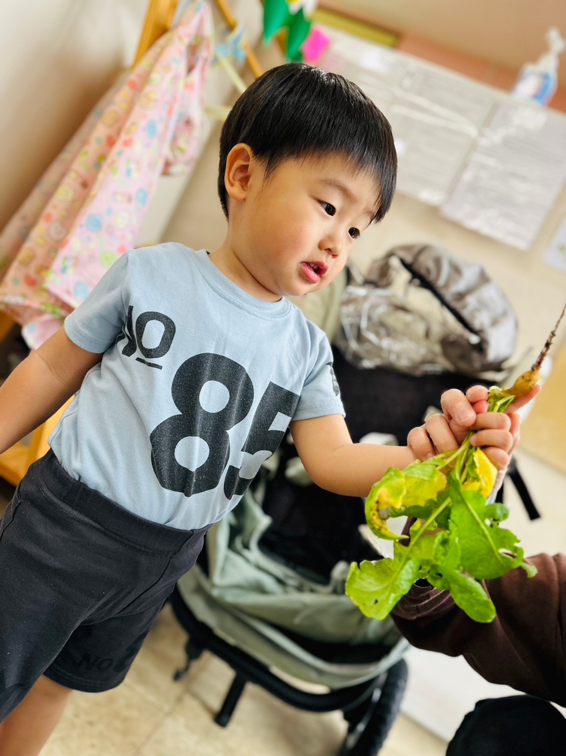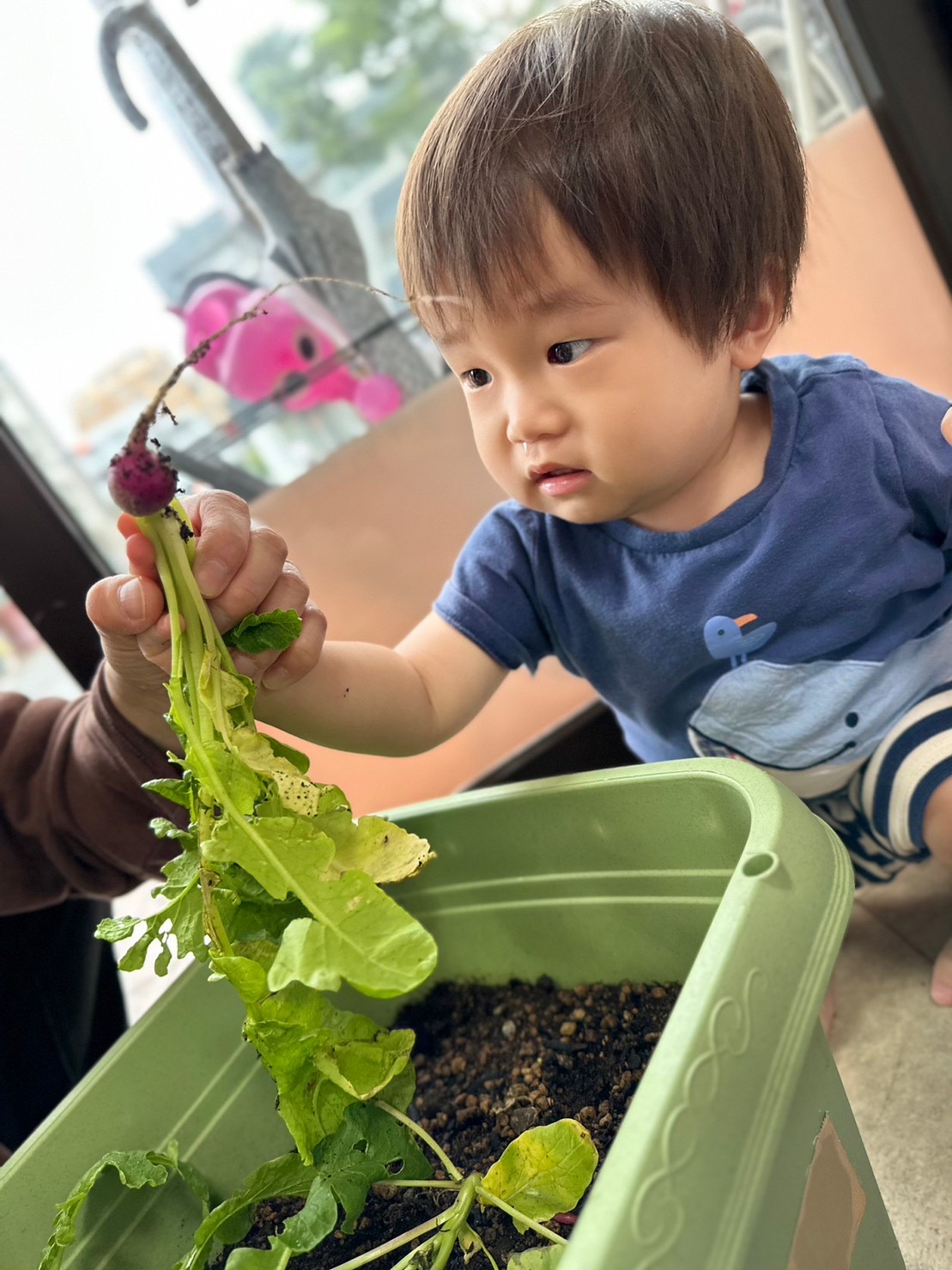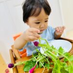 種から植えて、ラディッシュができた事、達成感いっぱいなお顔ですね😊