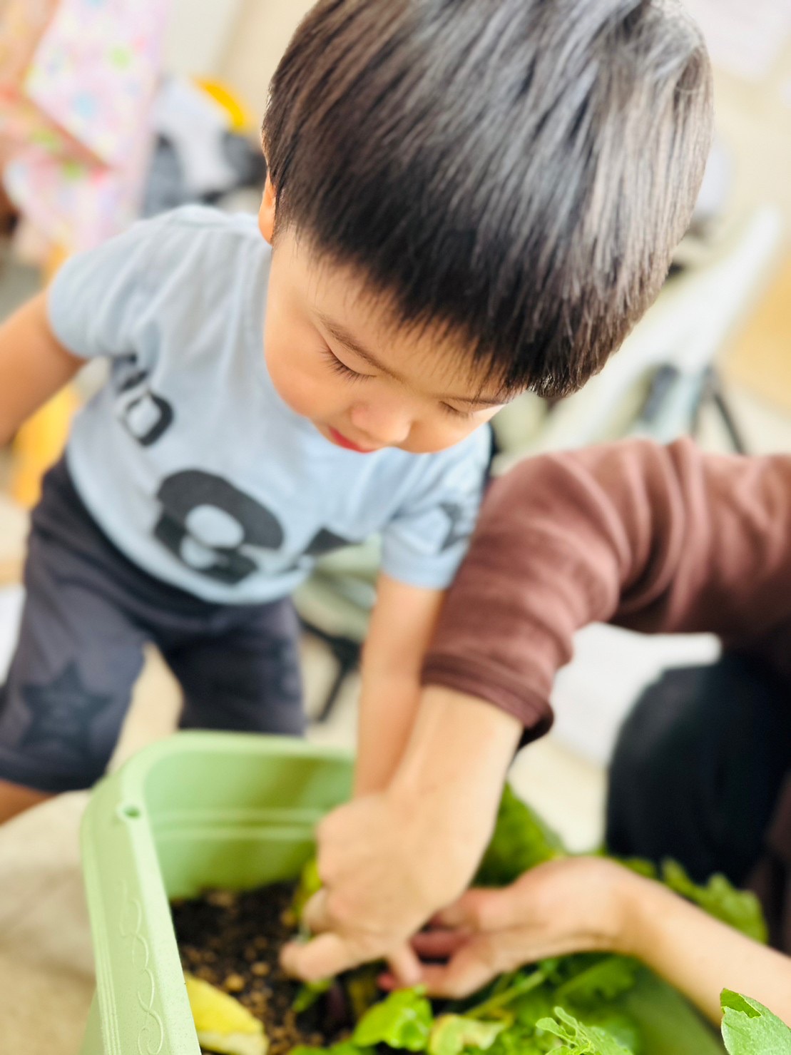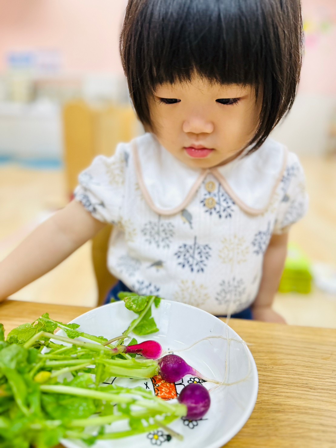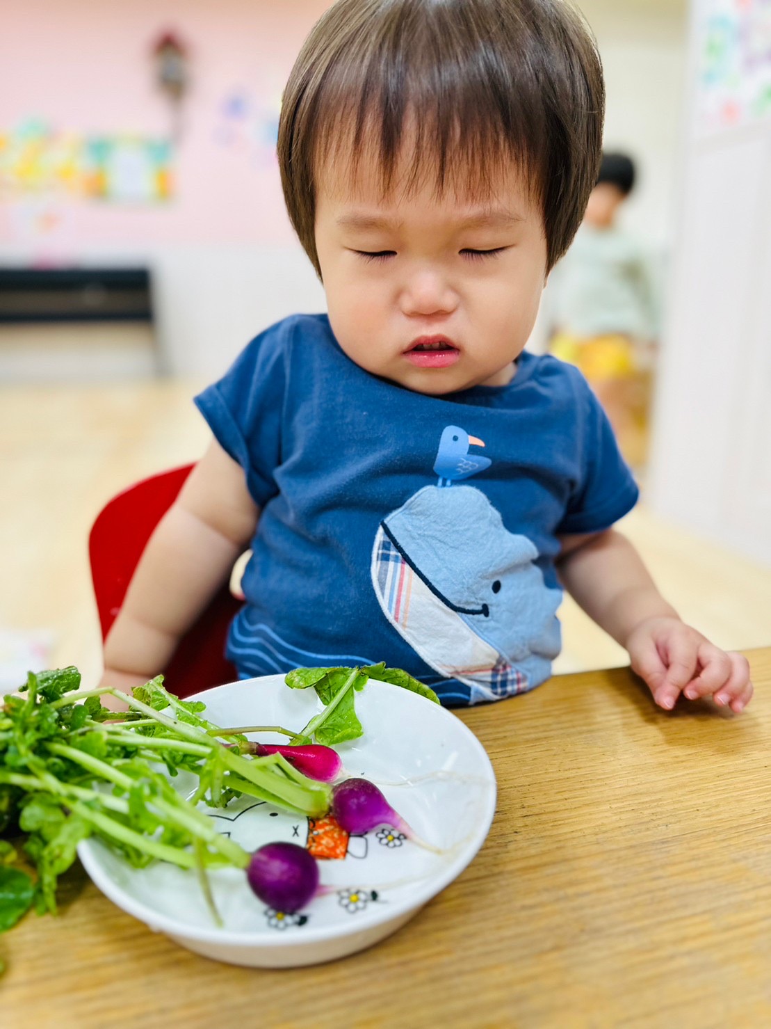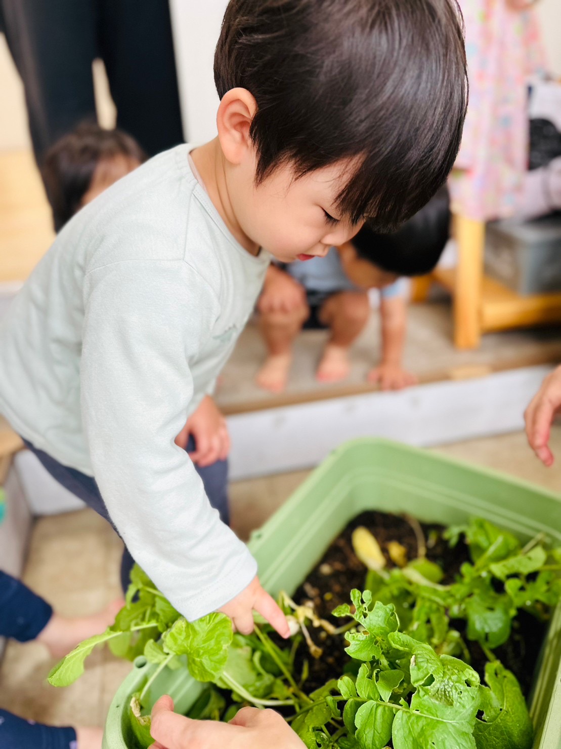 種から植えて、ラディッシュができた事、達成感いっぱいなお顔ですね😊