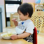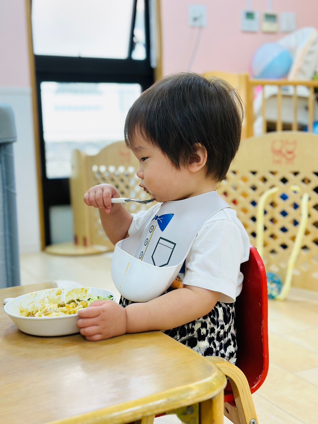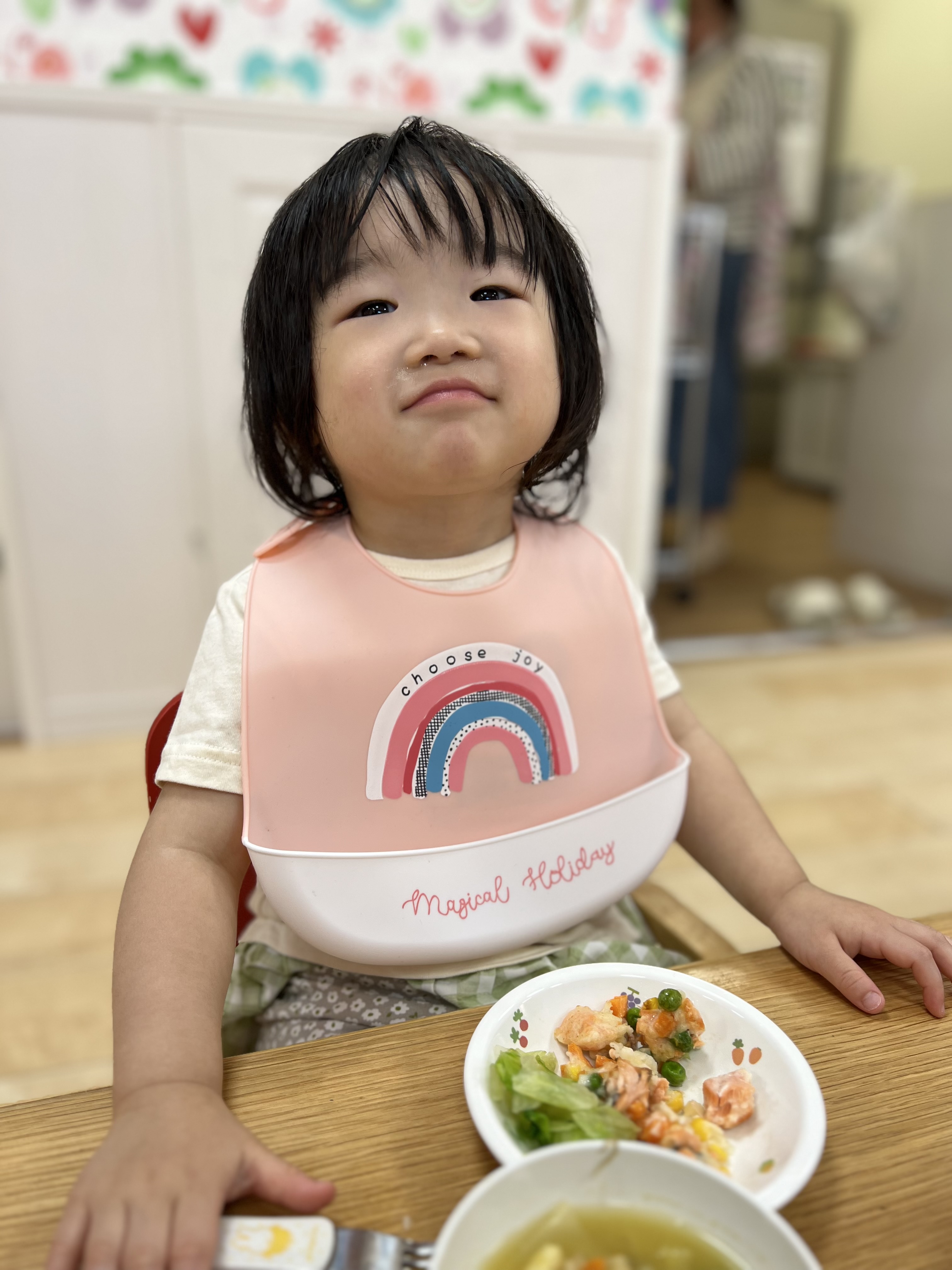 保育園に戻ると美味しいお給食が待ってました🎵アジサイ揚げ、お散歩で見つけたお花を思い出し、ニッコリ嬉しそうにいただきましたよ😊