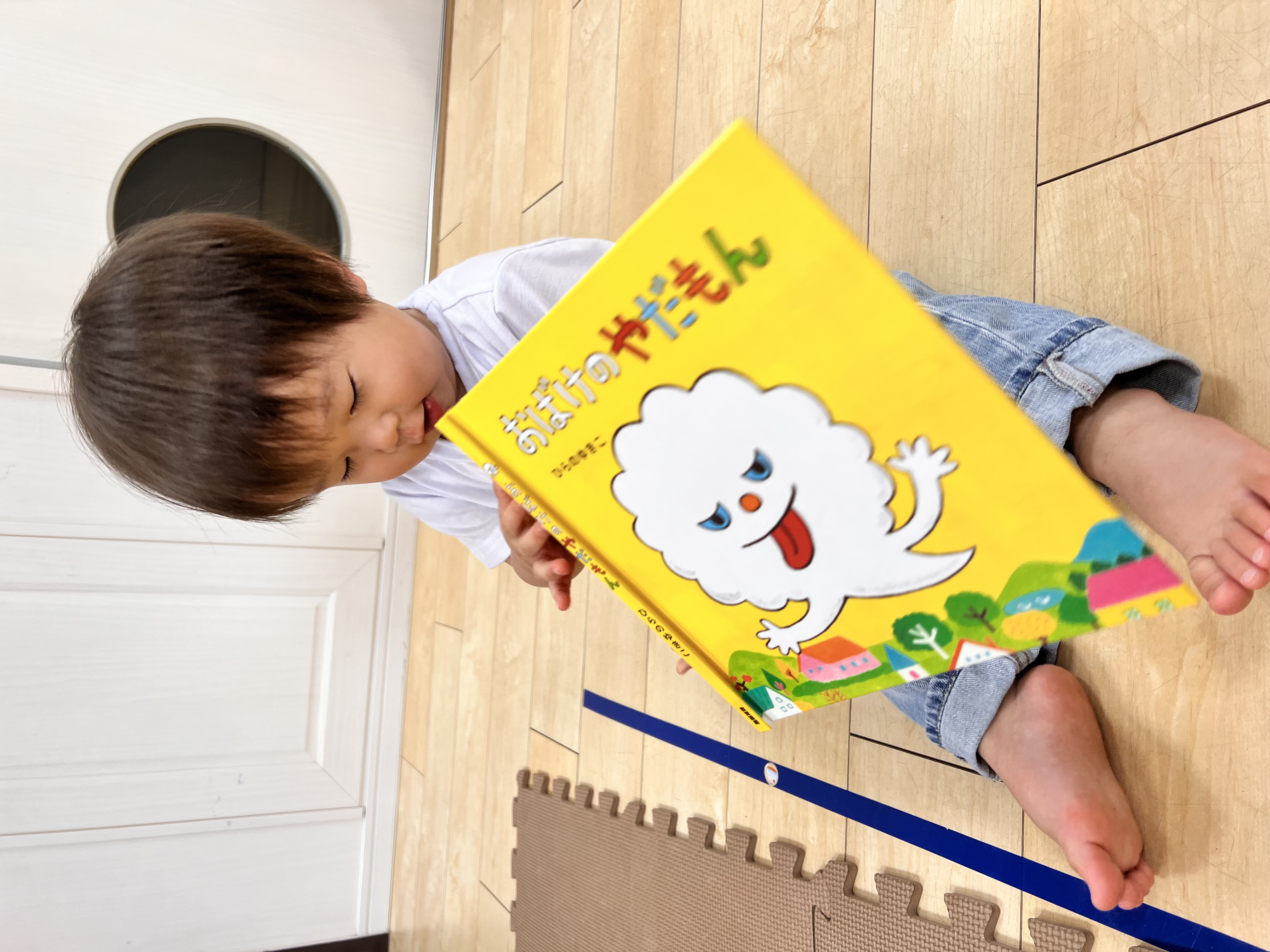 先生の真似っこしながら、大好きな絵本を持ってきてます😊