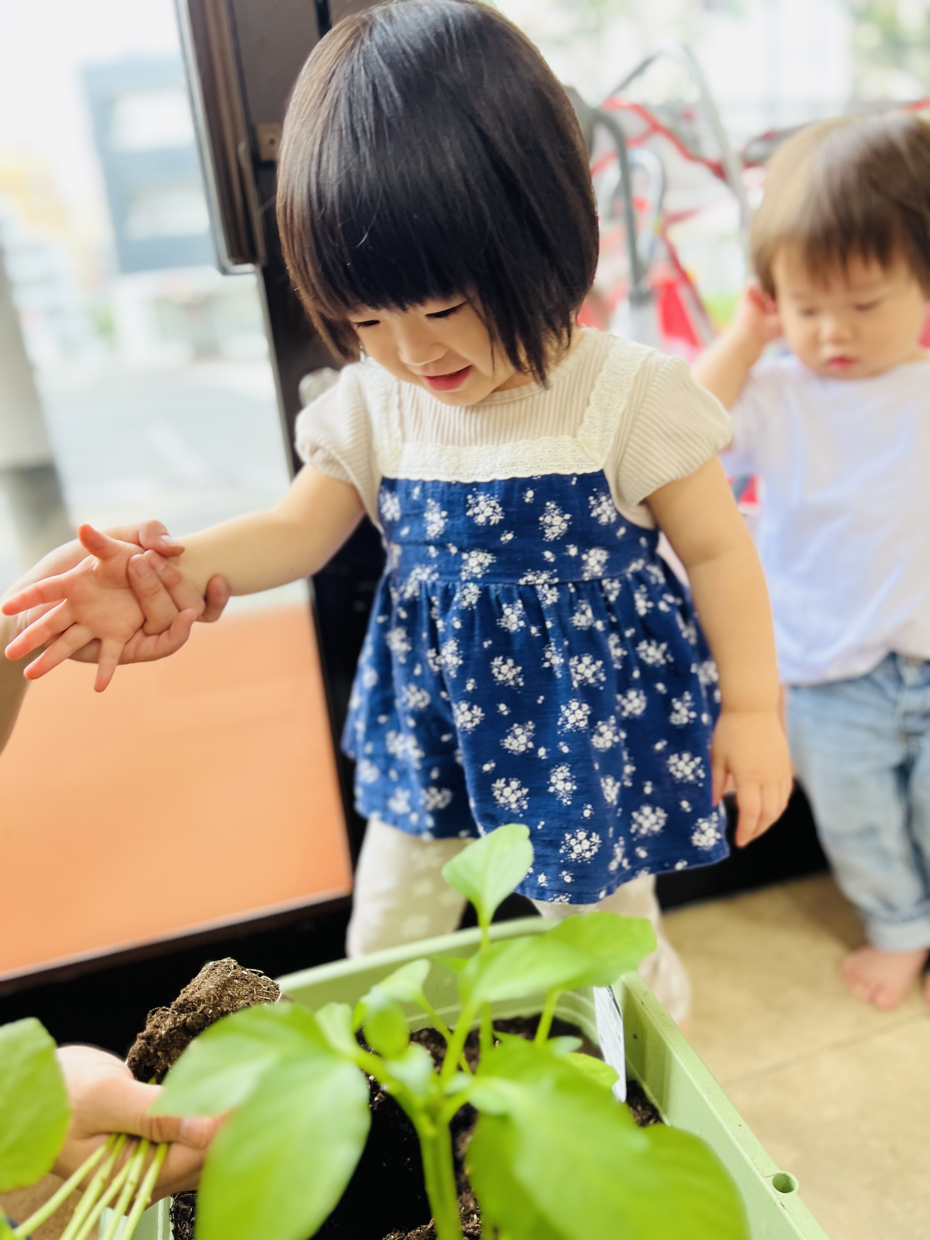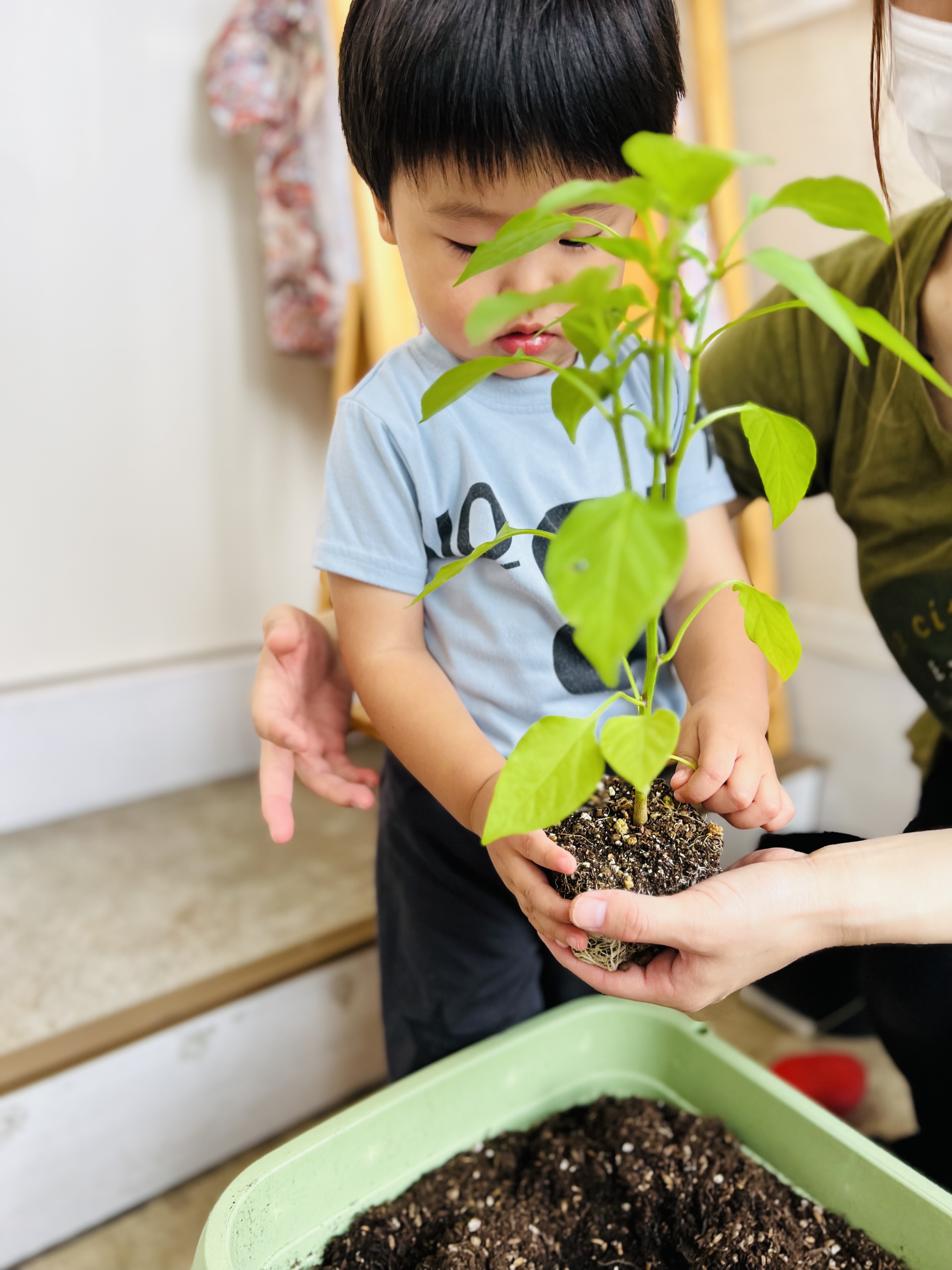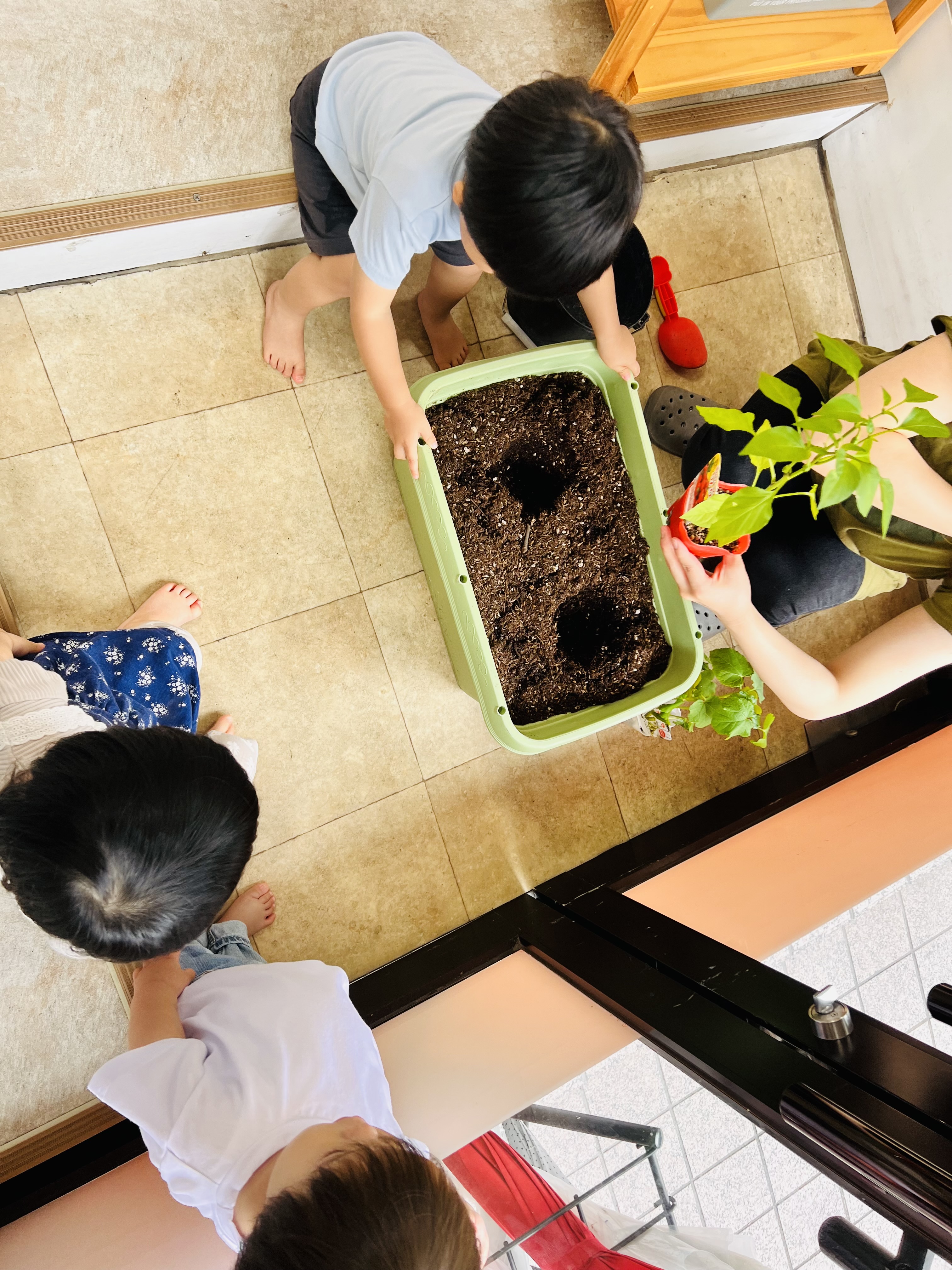 優しく苗を持ち、そーっと穴へ植えてくれました😊