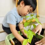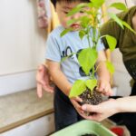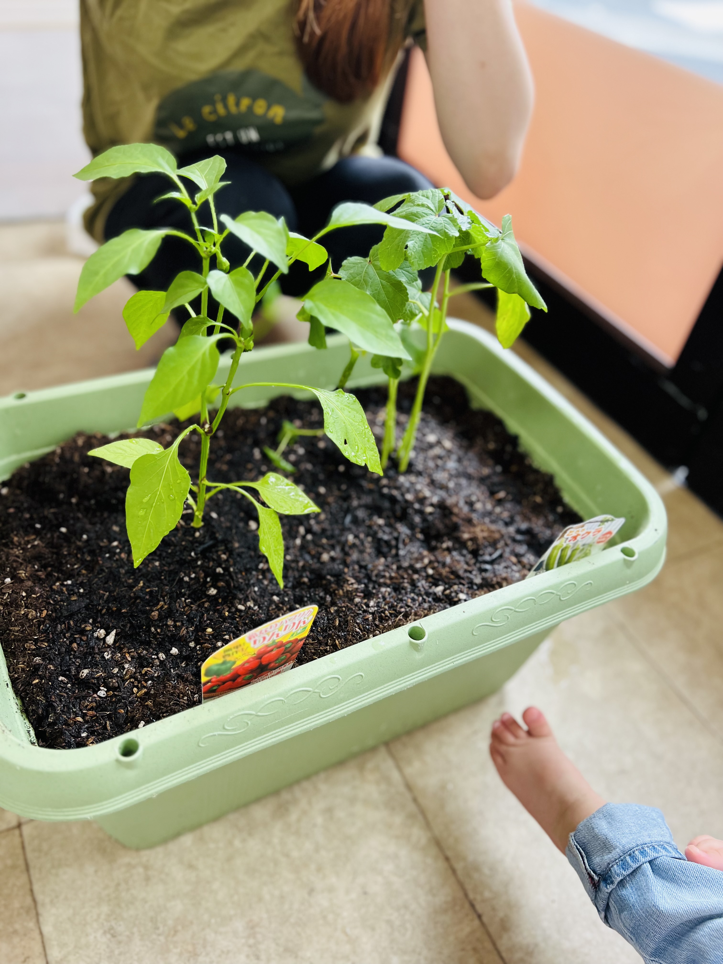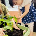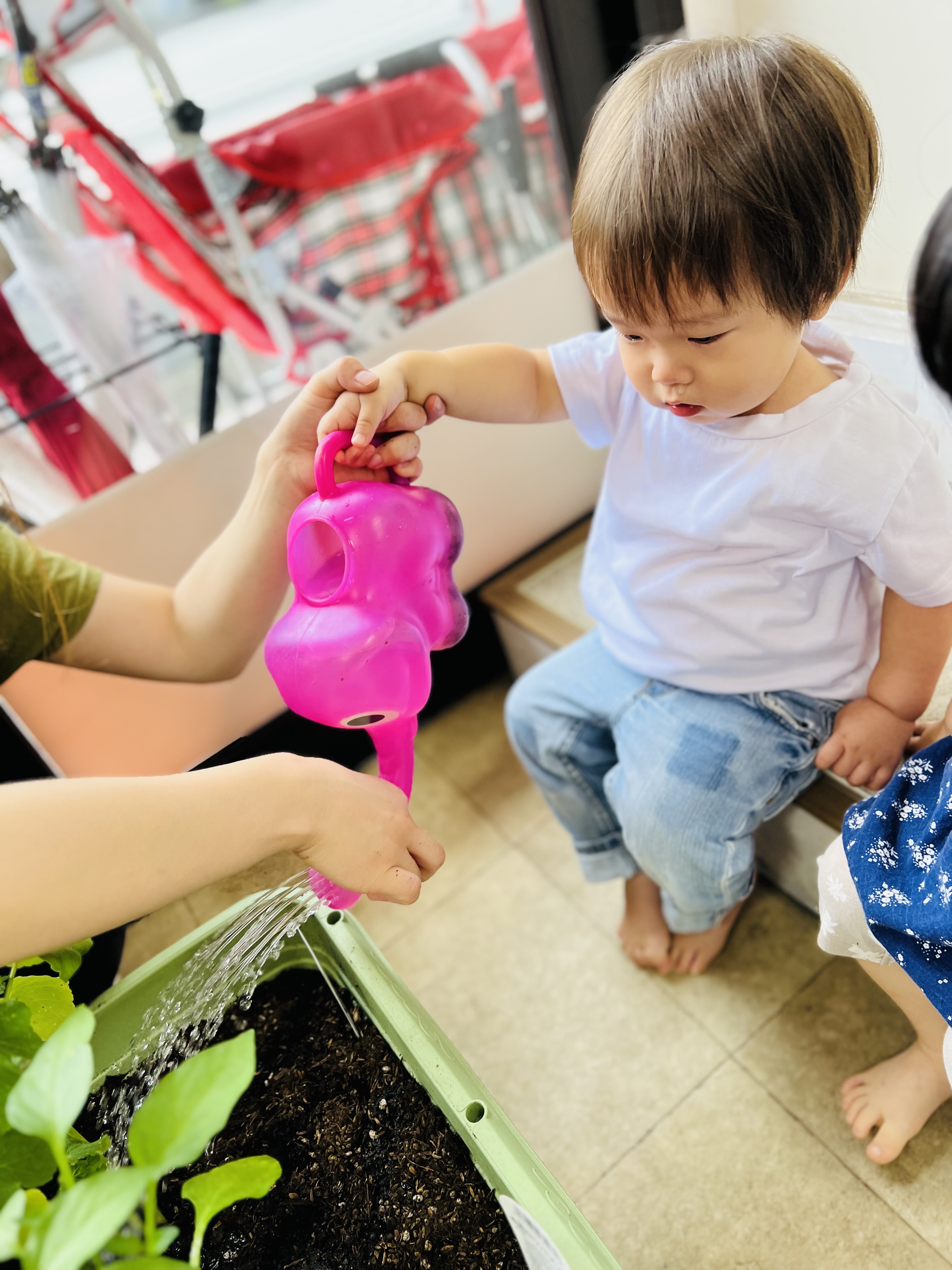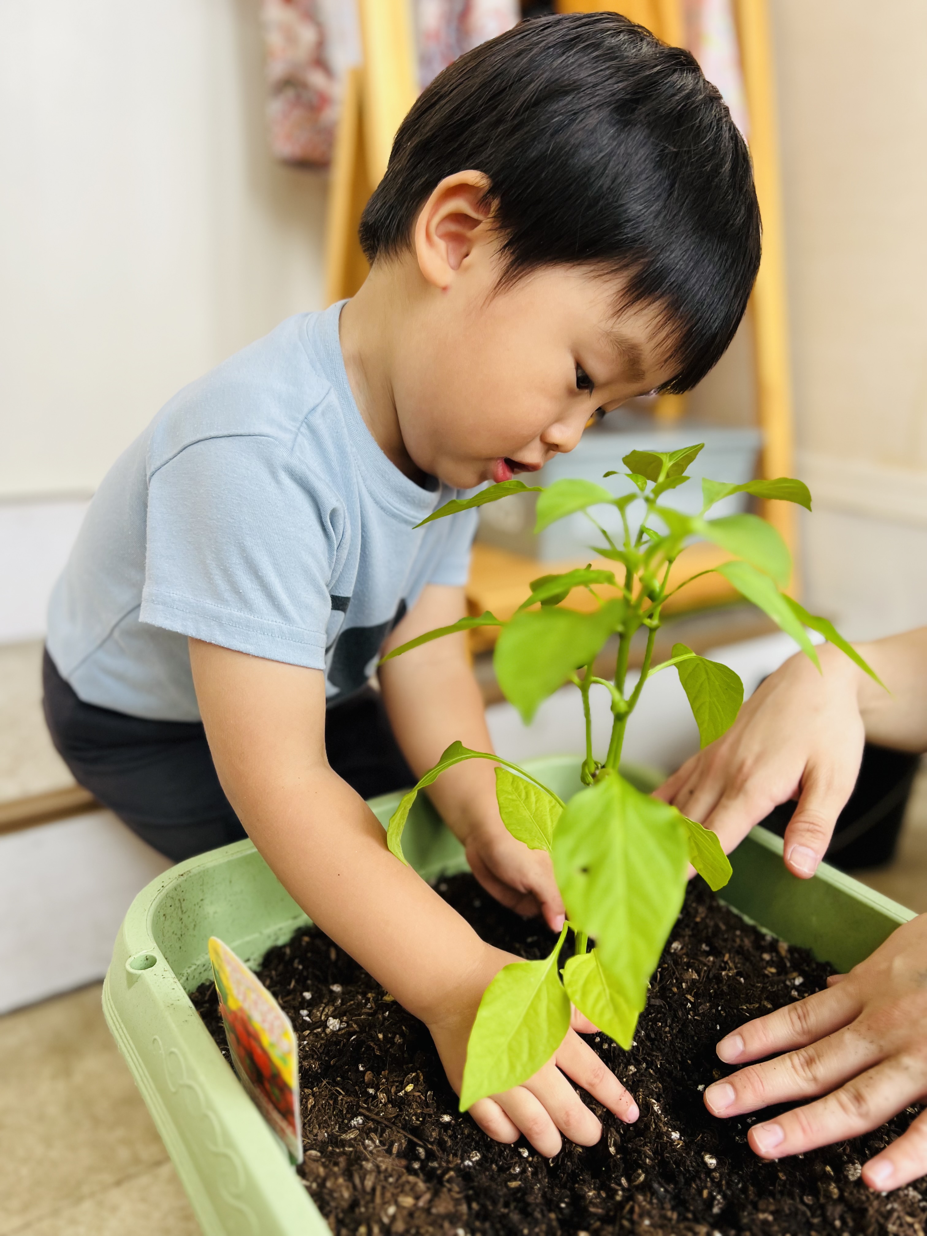 優しく苗を持ち、そーっと穴へ植えてくれました😊