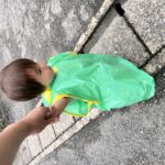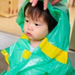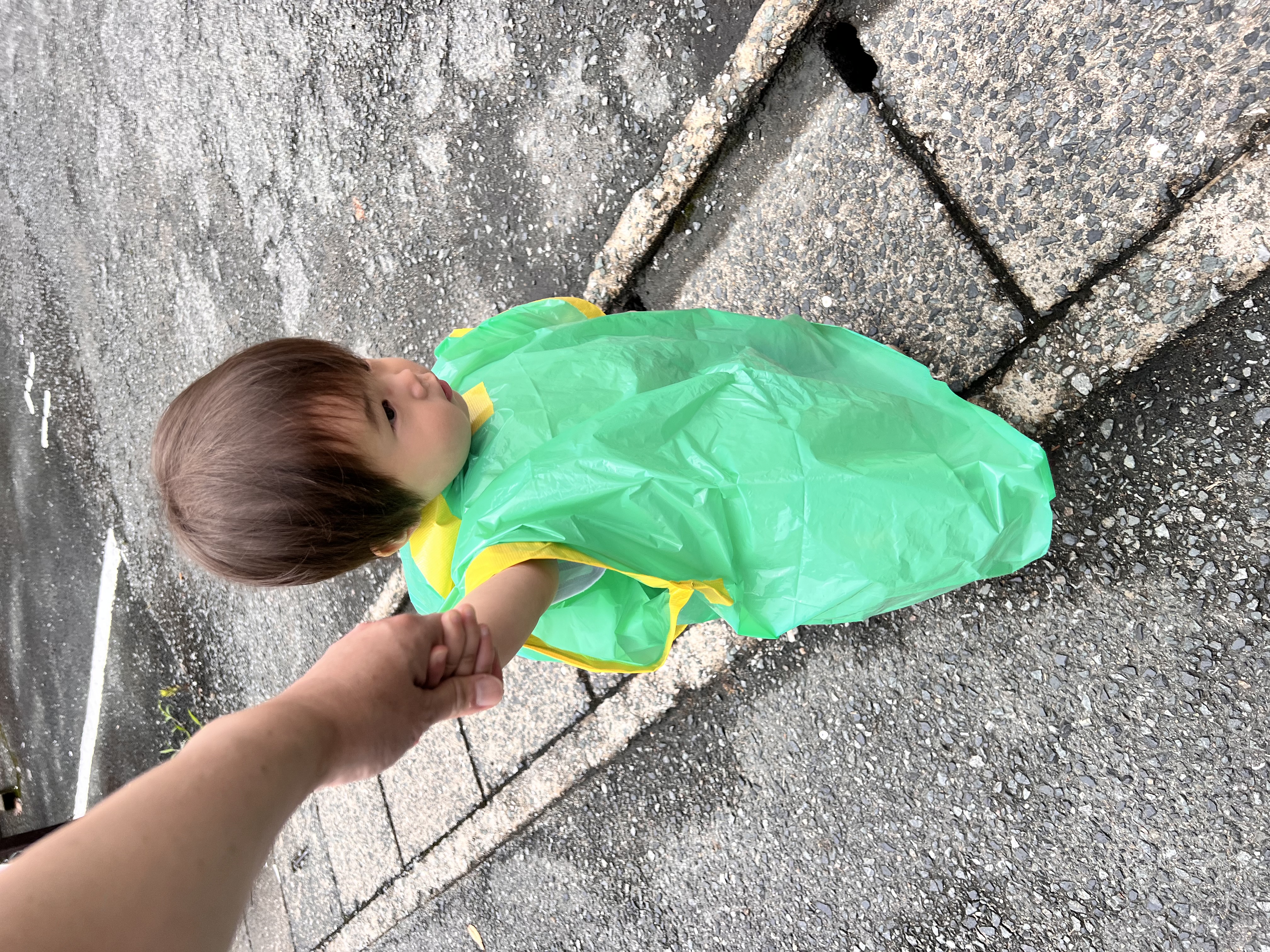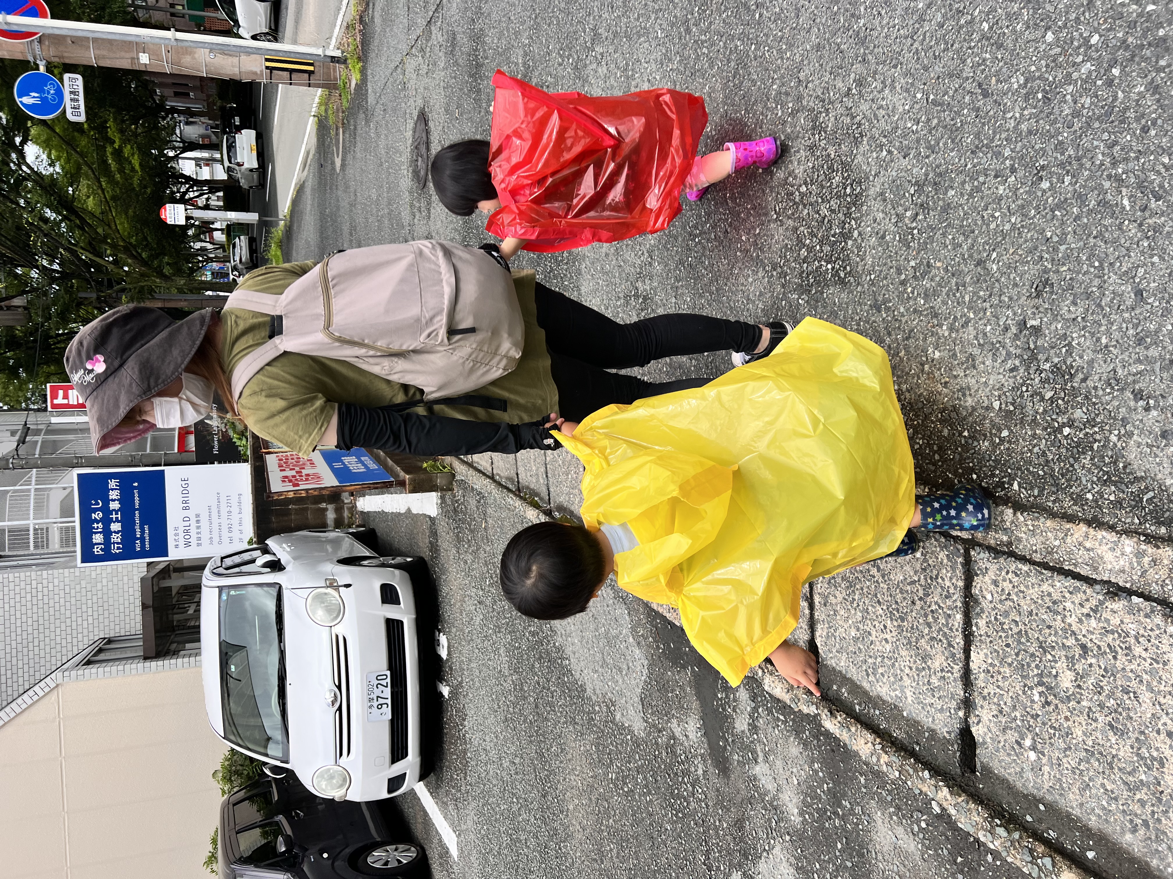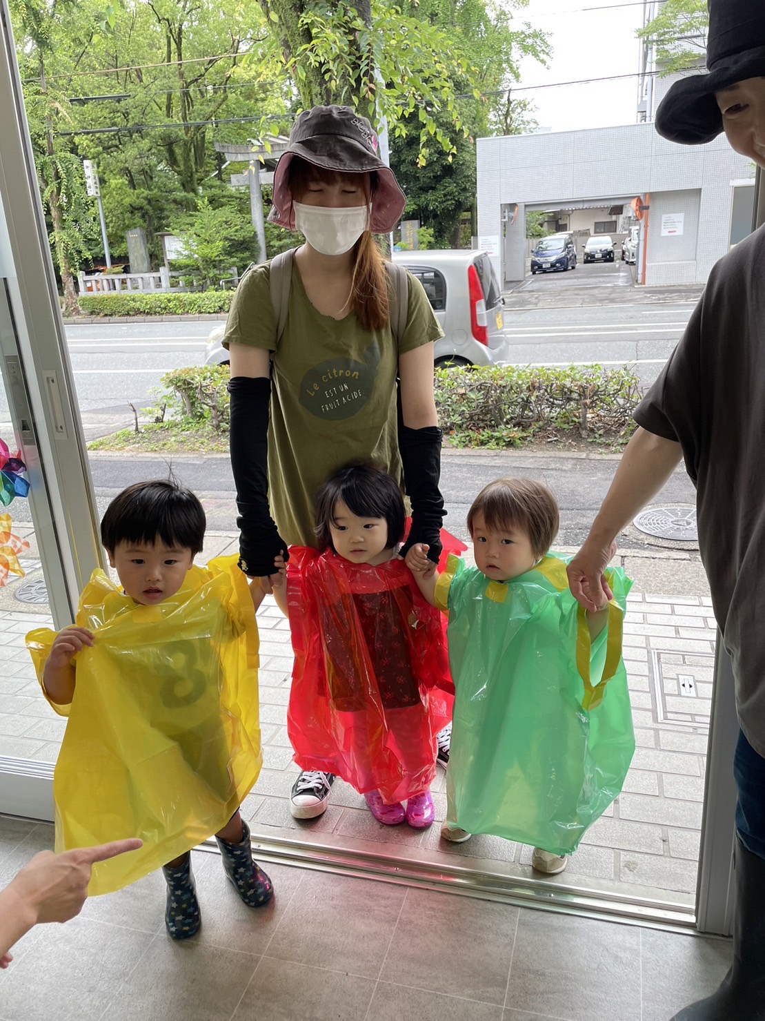 雨上がりの水たまりにニコニコ嬉しそうなお友達のお顔がちらっとレインコートからのぞいて可愛いかったです❤️