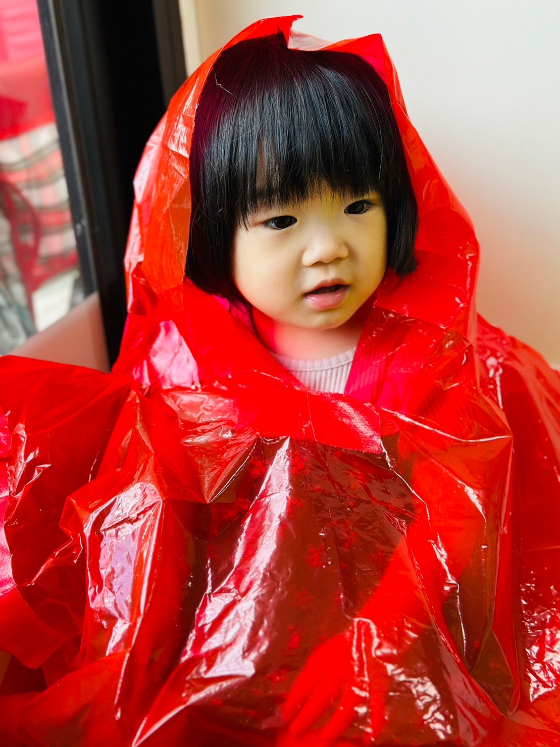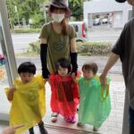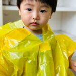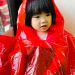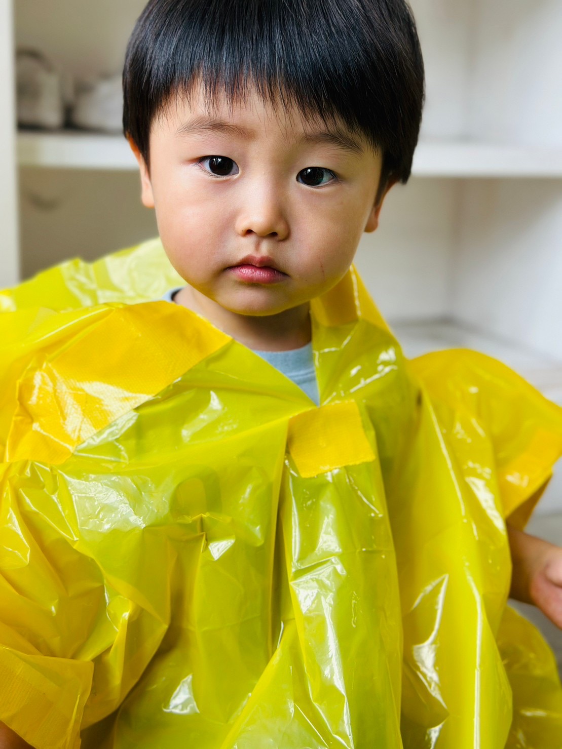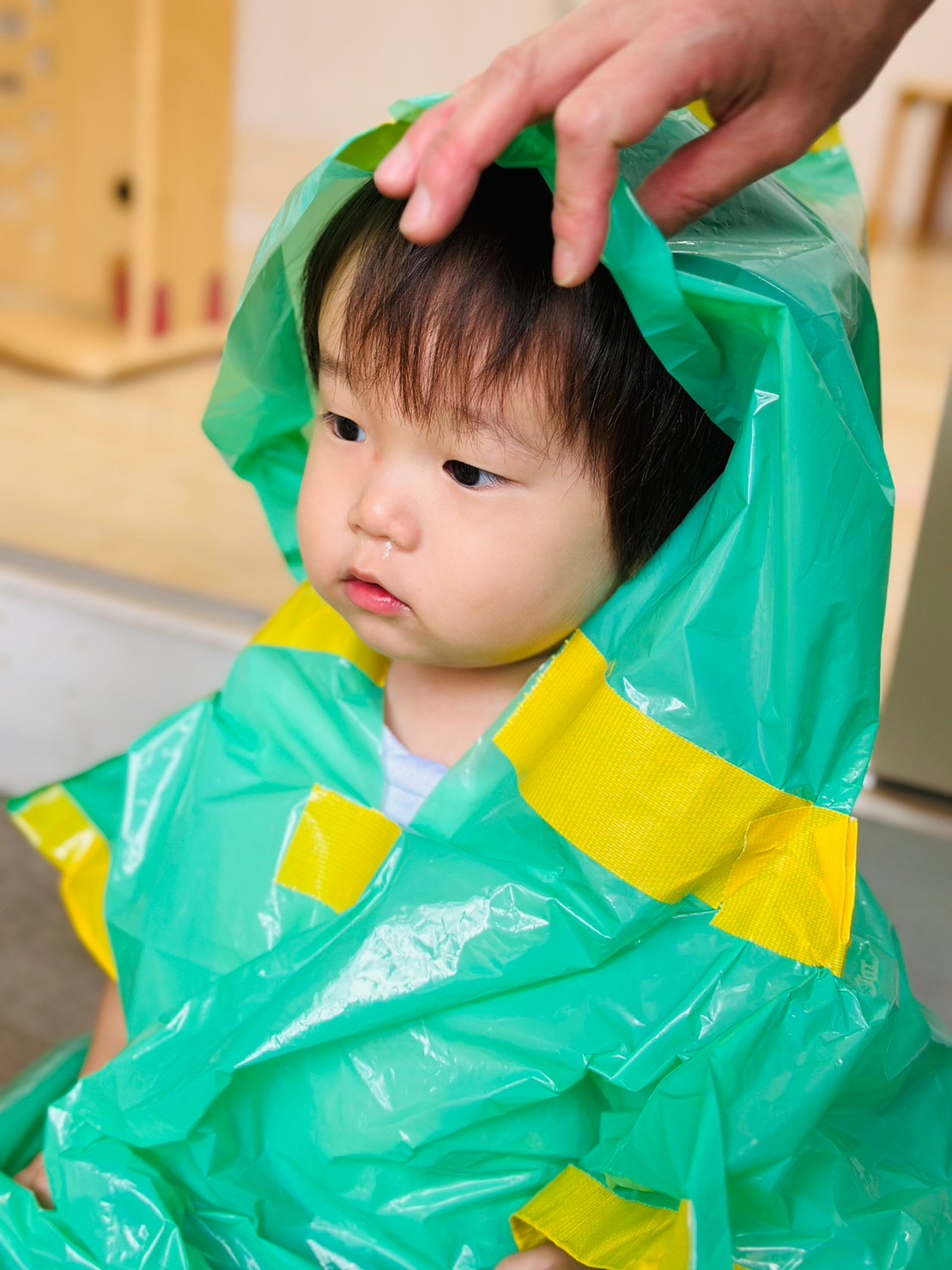 雨上がりの水たまりにニコニコ嬉しそうなお友達のお顔がちらっとレインコートからのぞいて可愛いかったです❤️