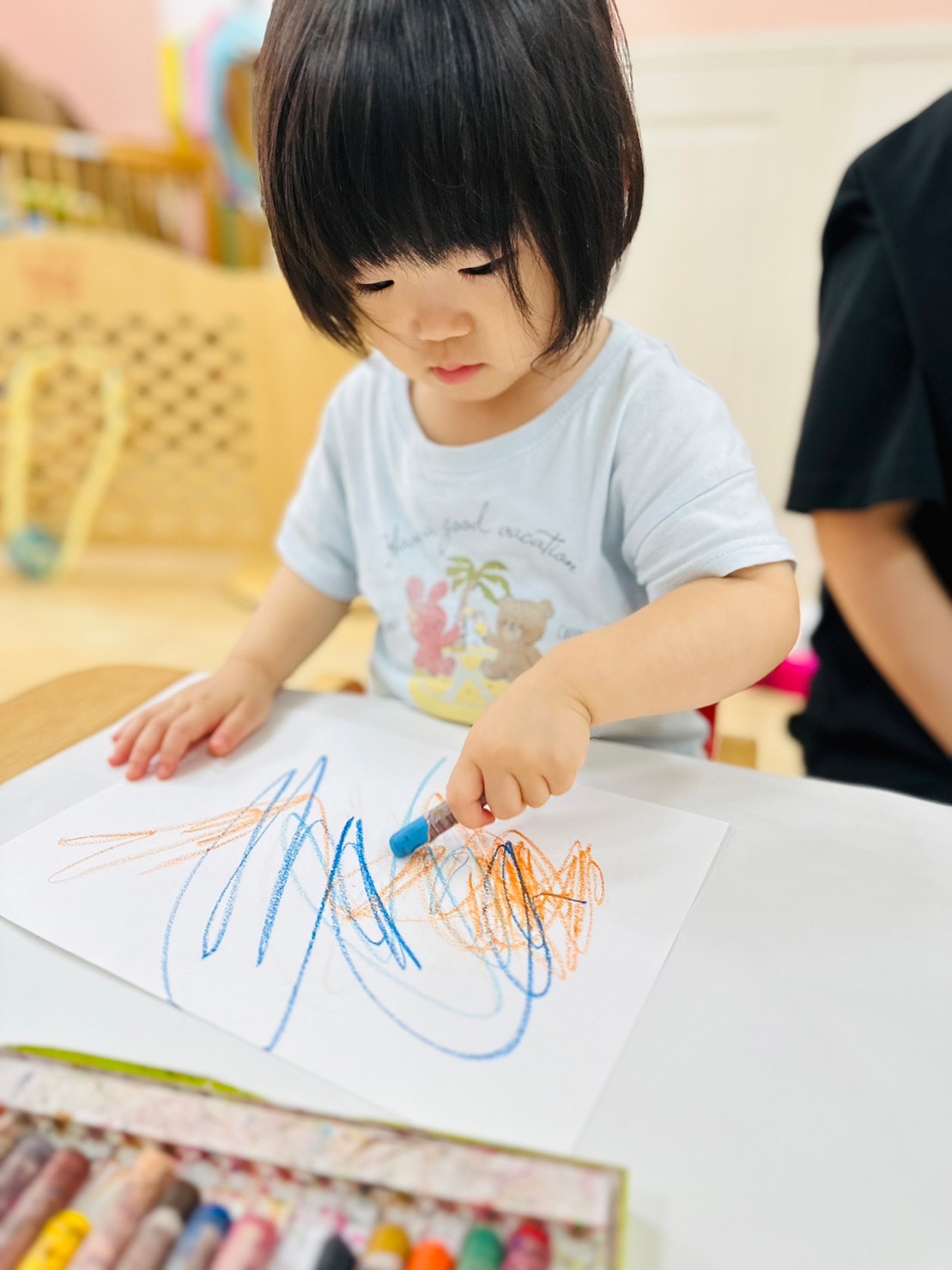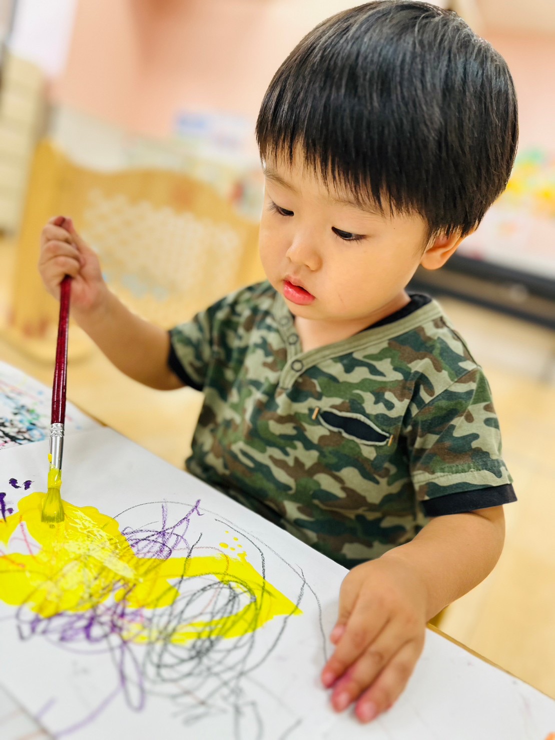 クレヨンで描いて、絵の具を上から塗りました‼️