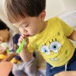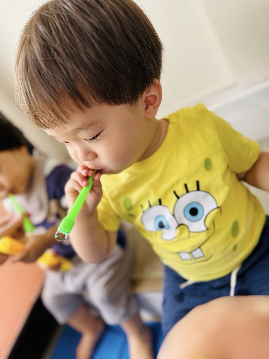 今日は玄関でシャボン玉遊びをしました🫧