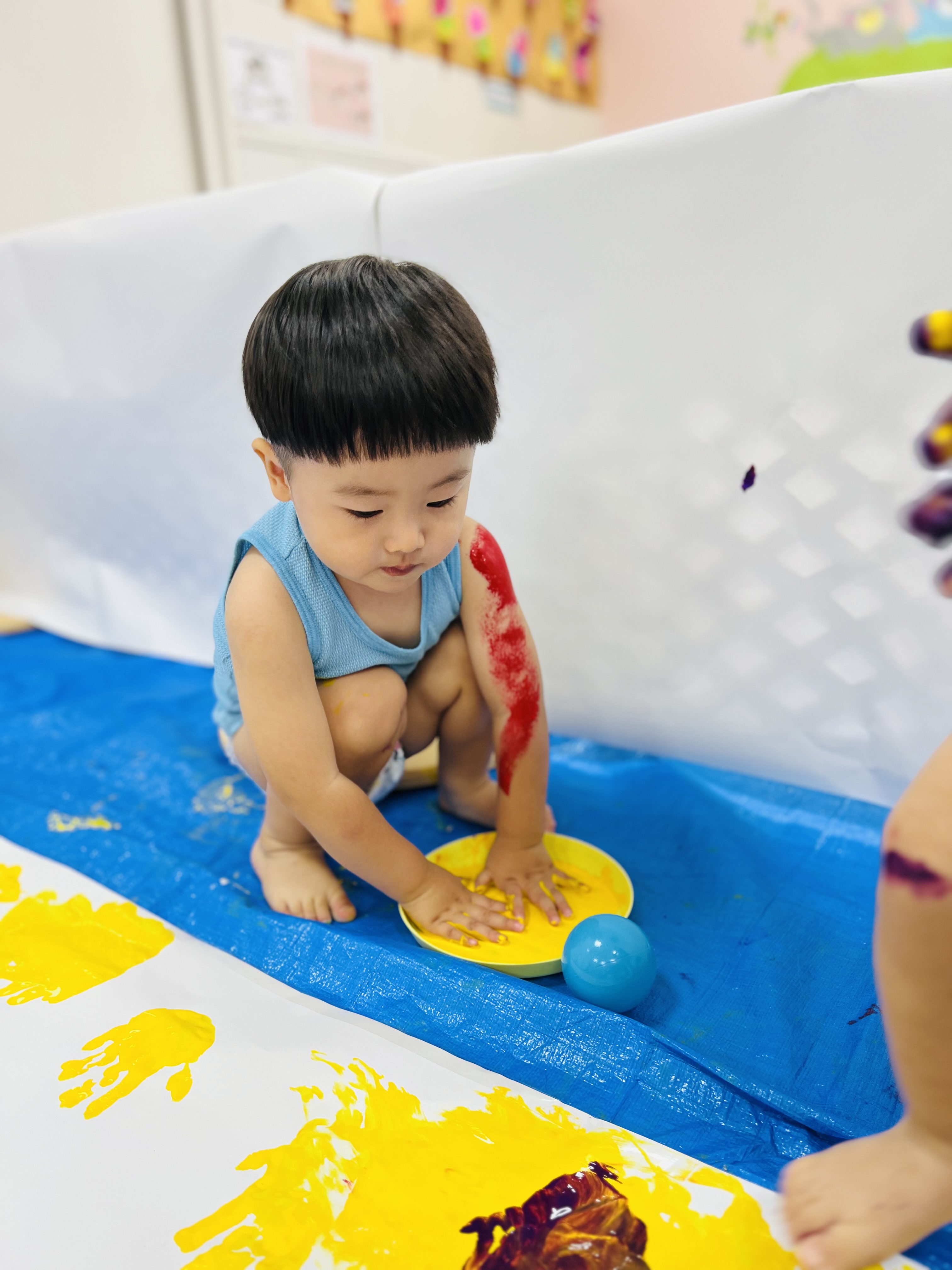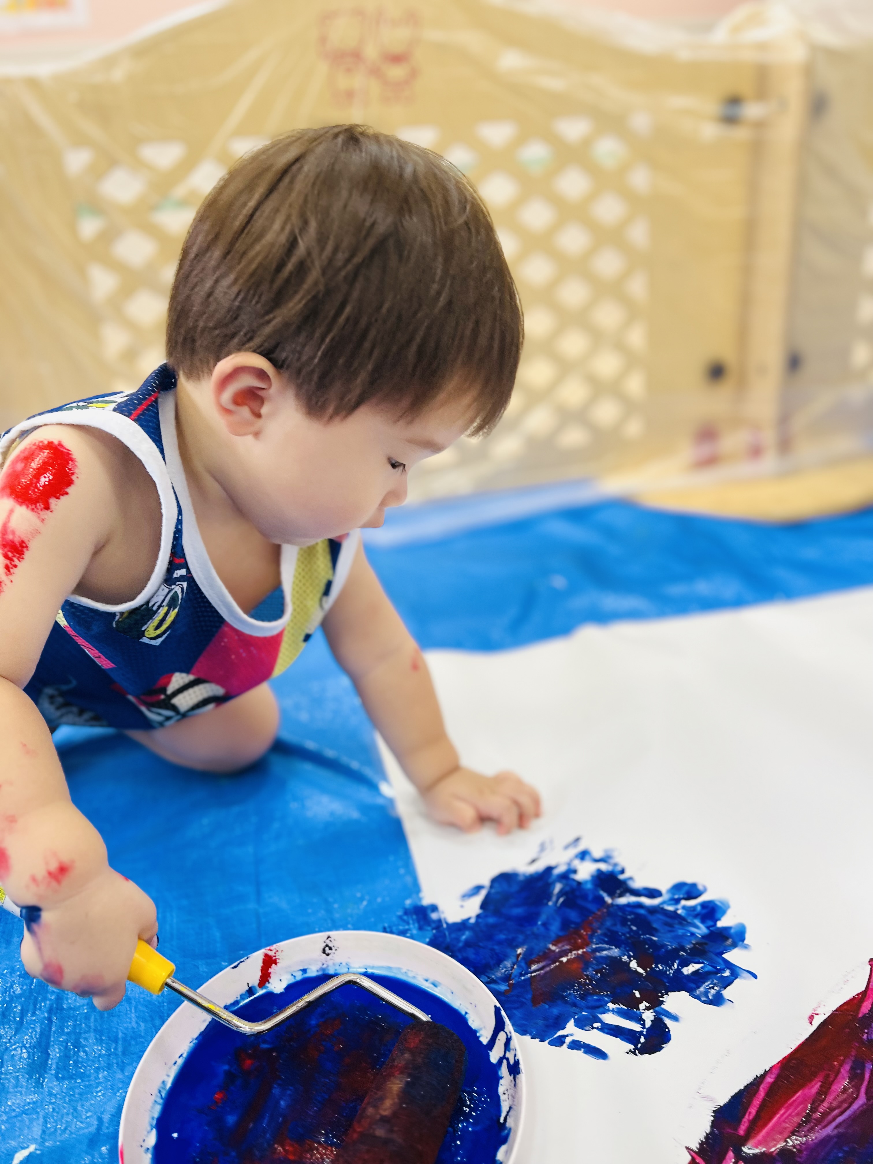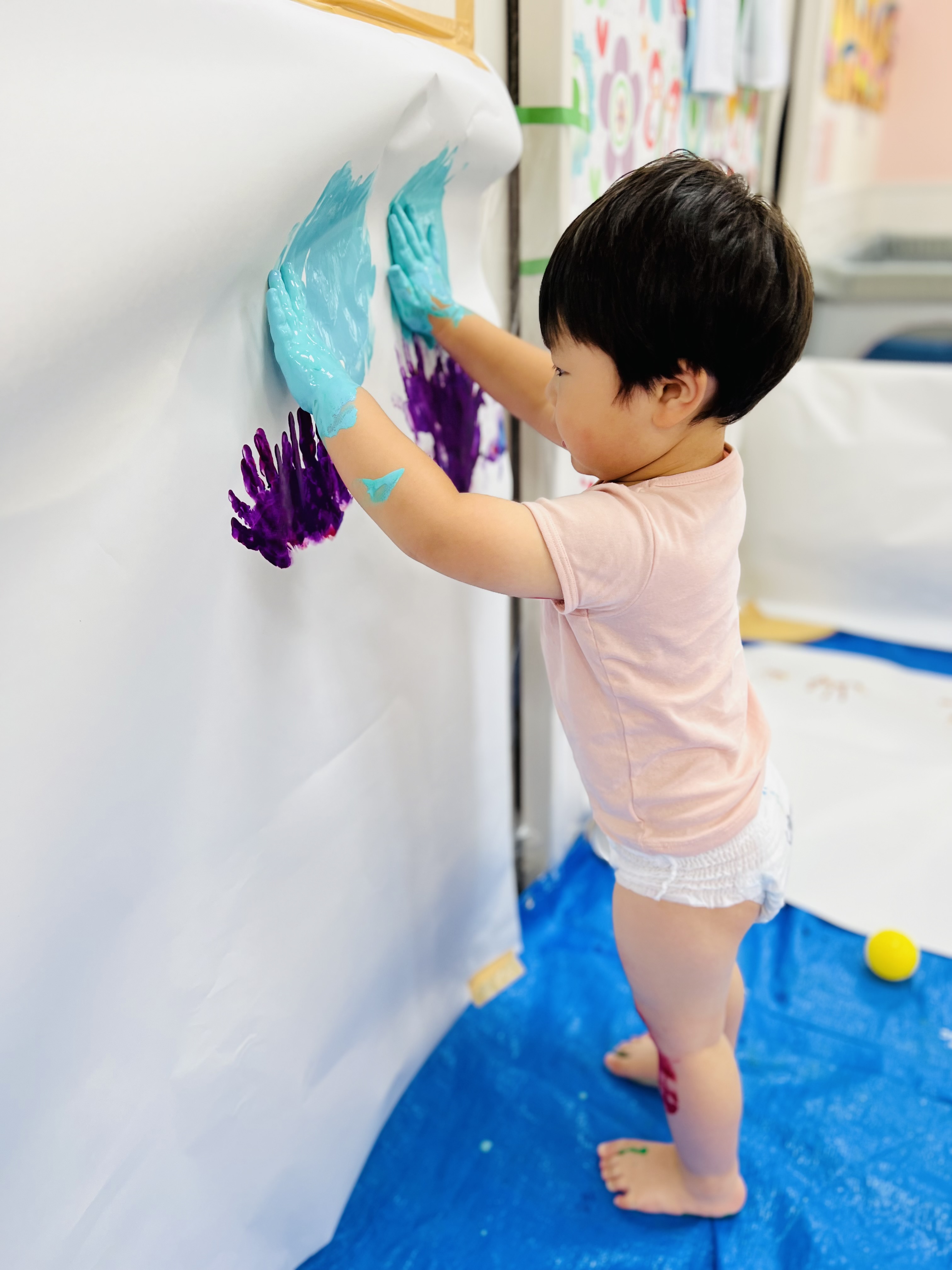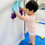 たくさんの模造紙にも手形をたくさんつけたり、絵の具をのばしたり、とっても楽しそうでした🎵