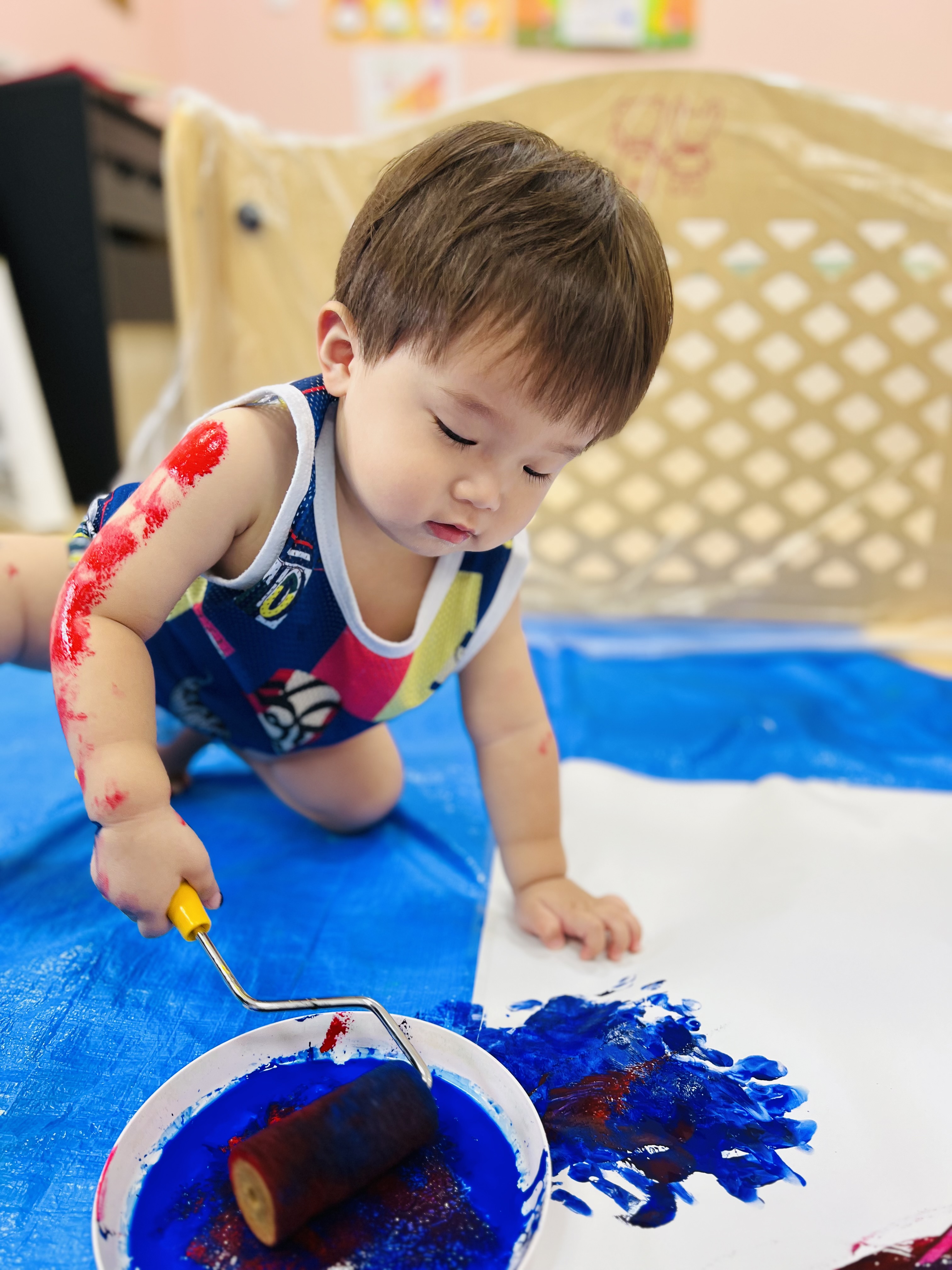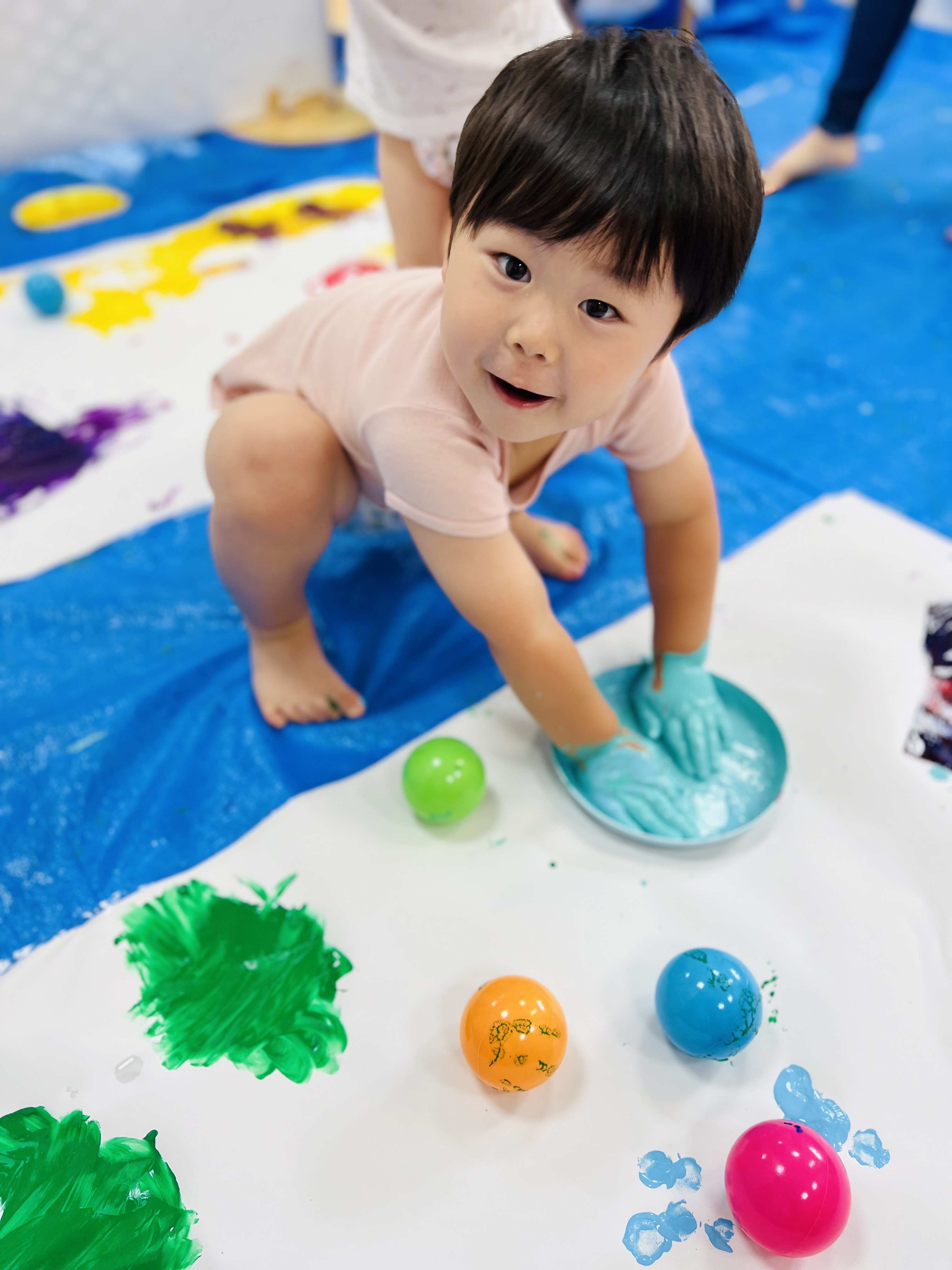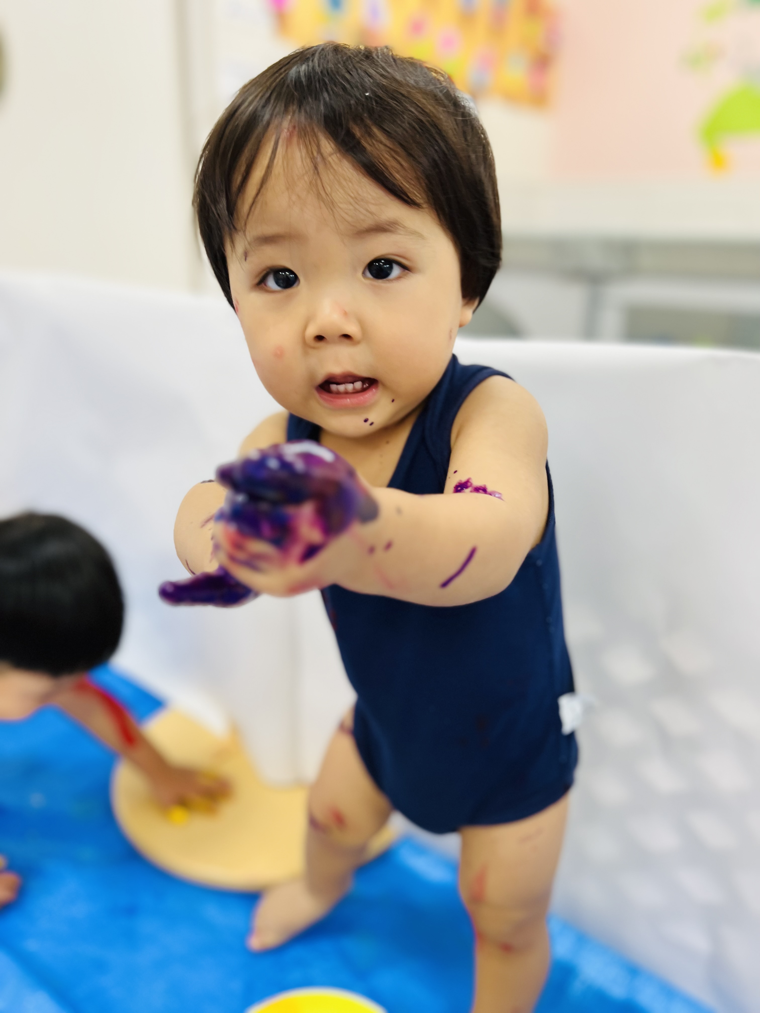 1番良い笑顔は先生やお友達の体に絵の具をつけた時の「キャー😆」が聞こえた時でした😁