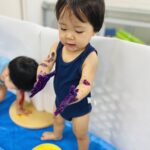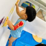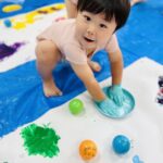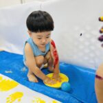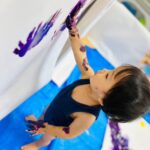 手を叩くと、絵の具が弾ける事に気付くと夢中で拍手を楽しんでましたよ🎵