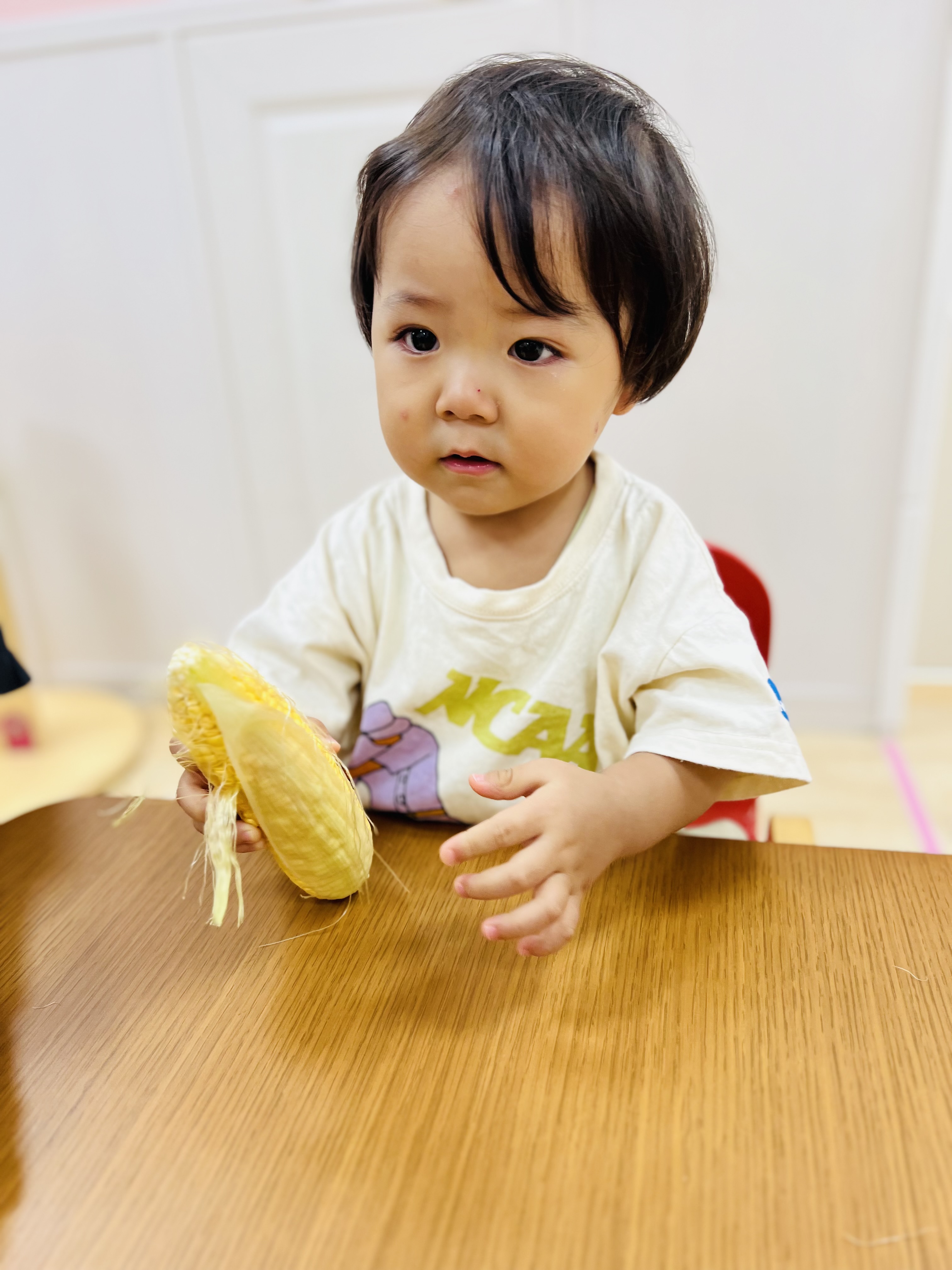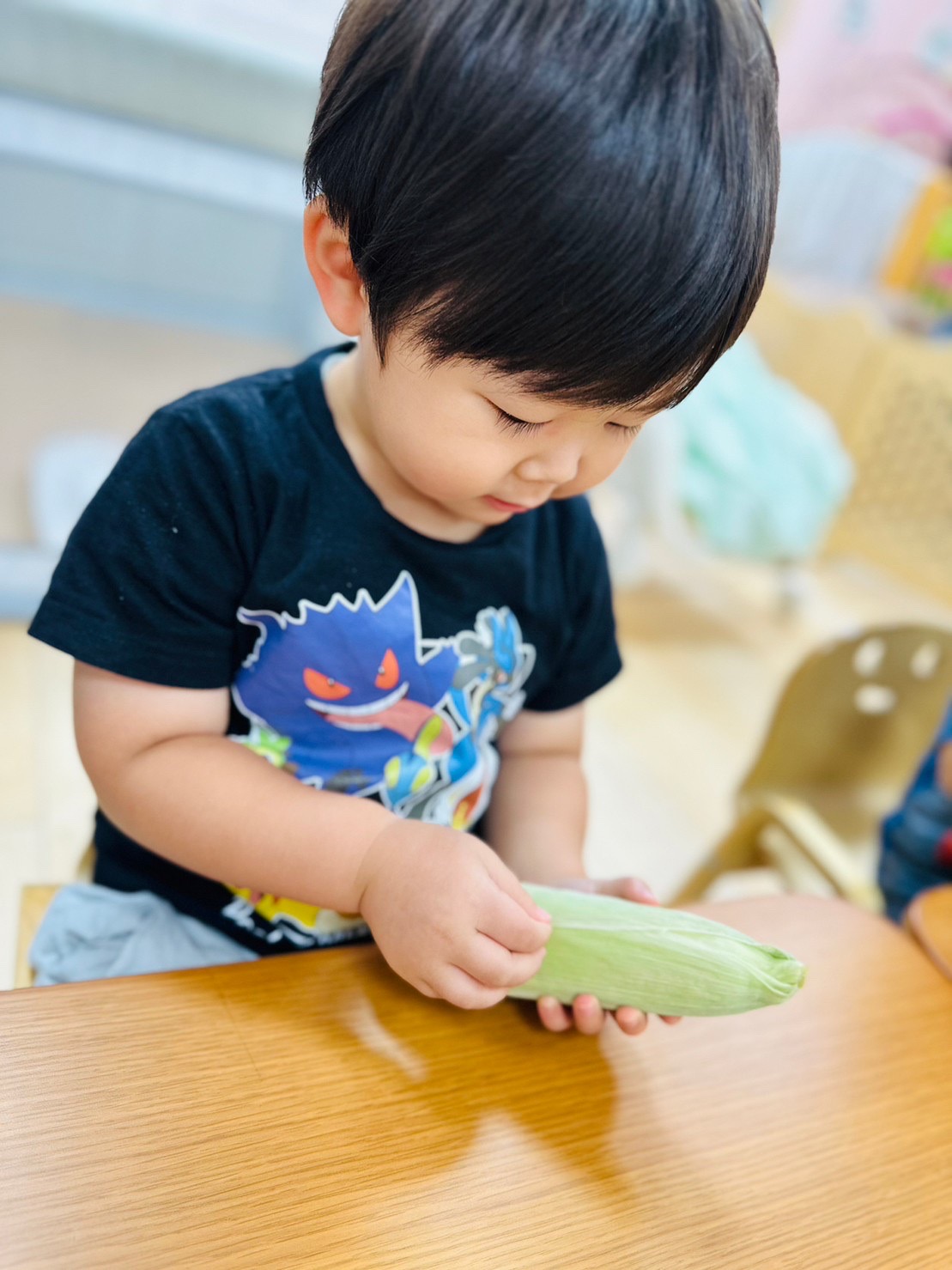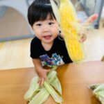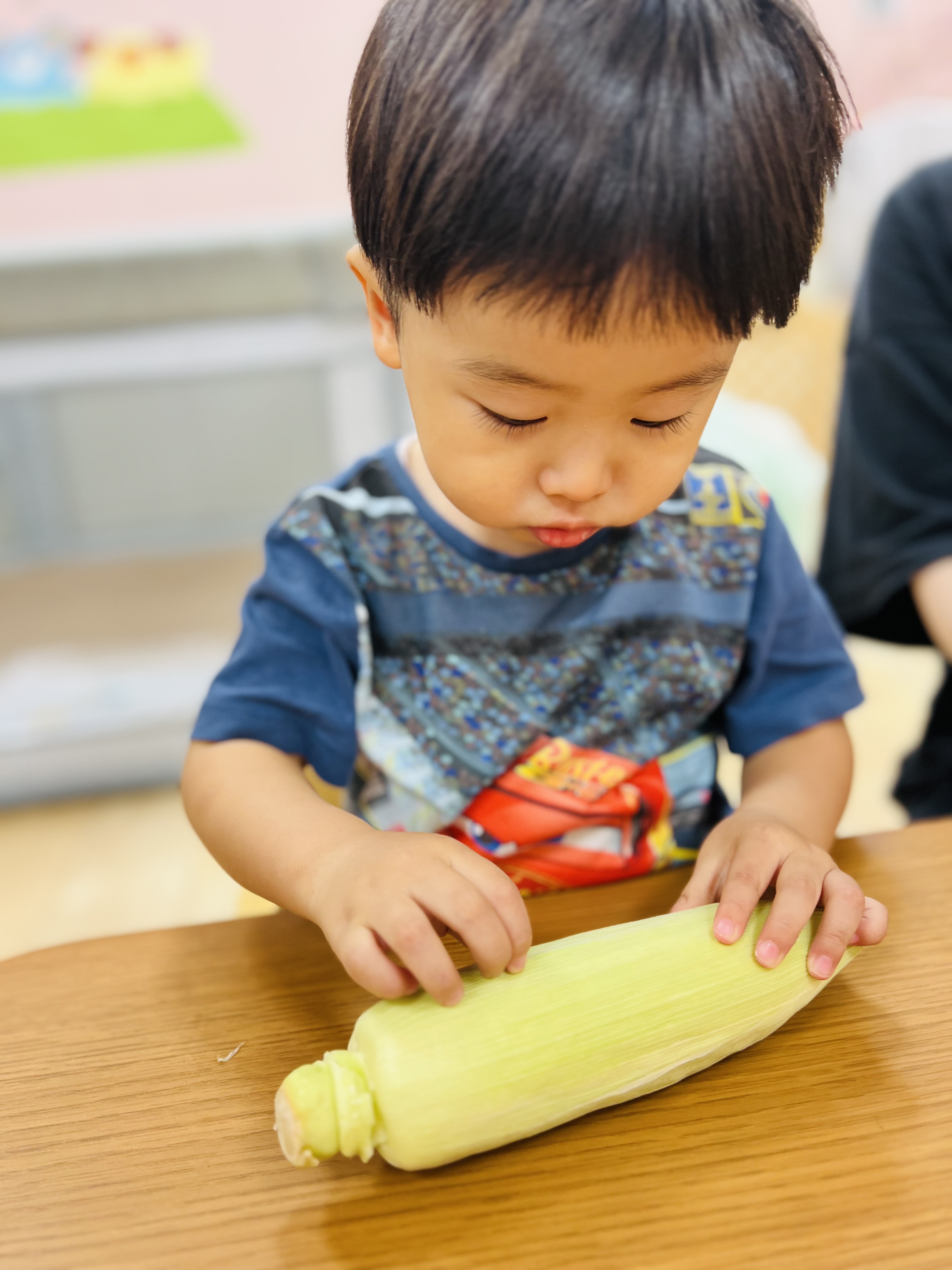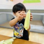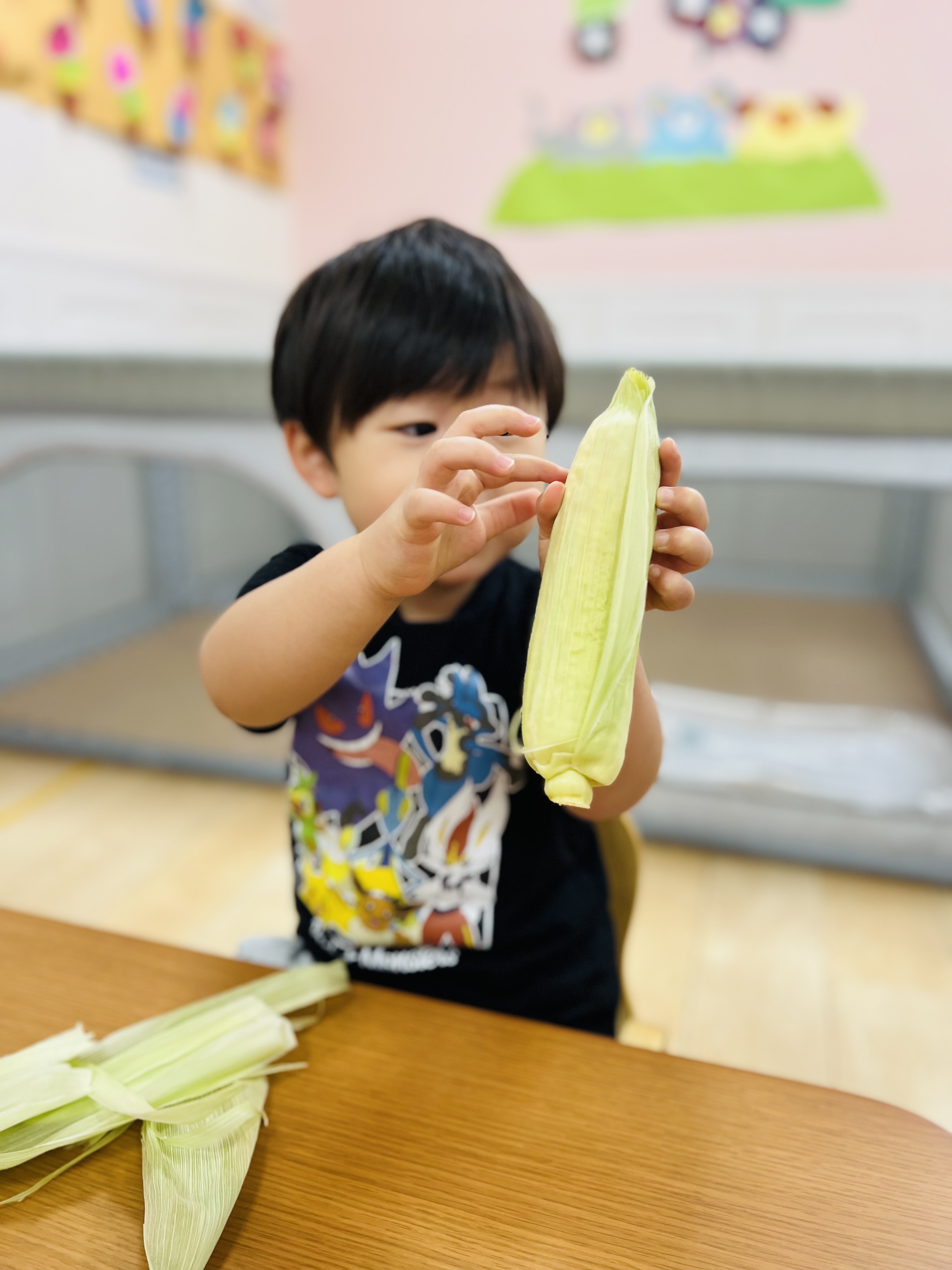 お給食で食べるとうもろこし、みんなで皮剥きをしましたよ😊
