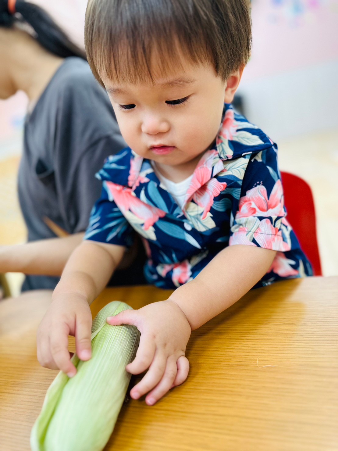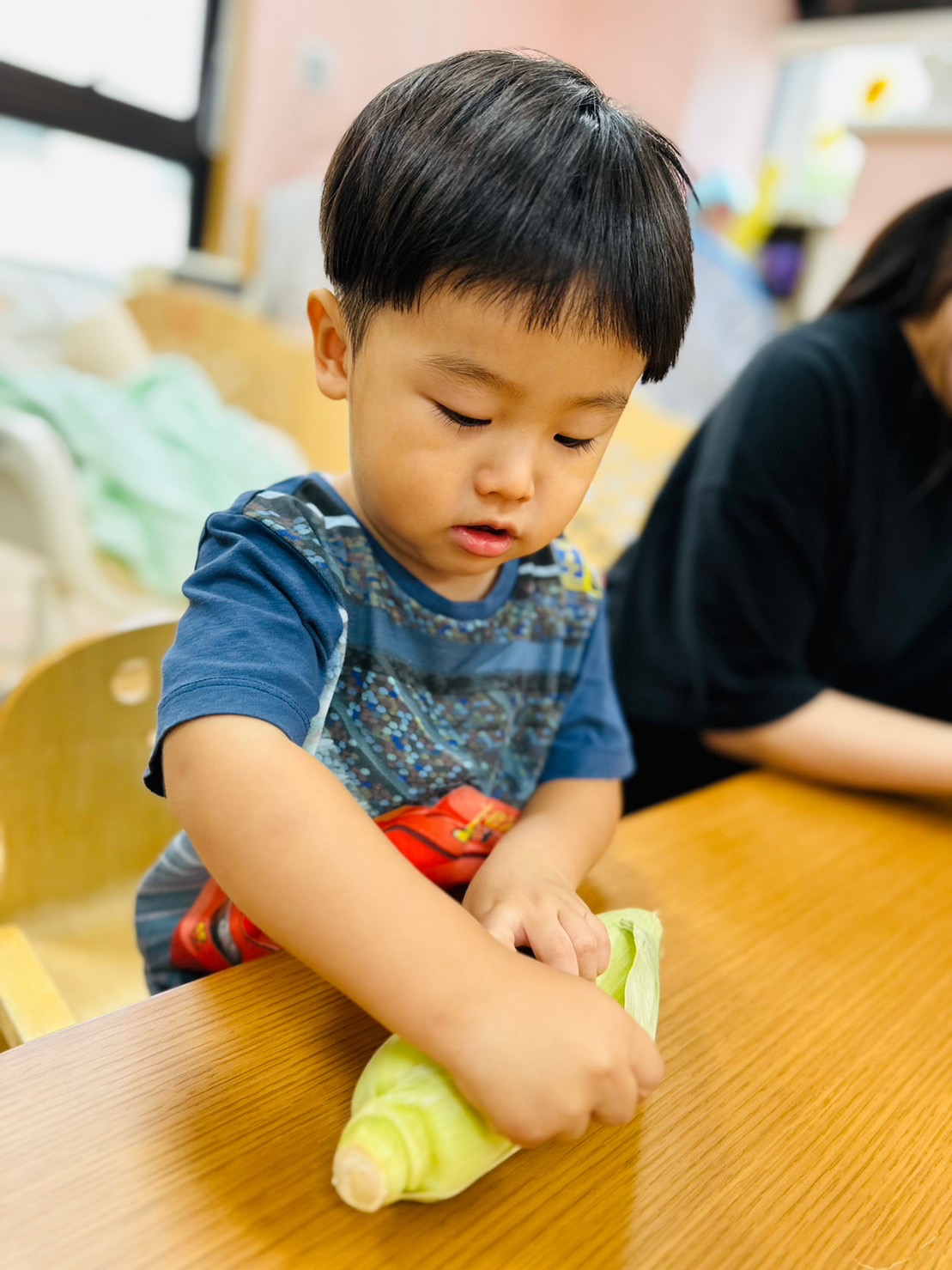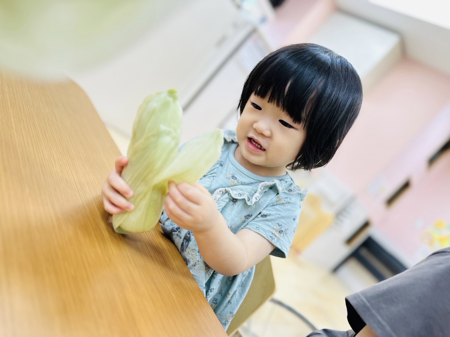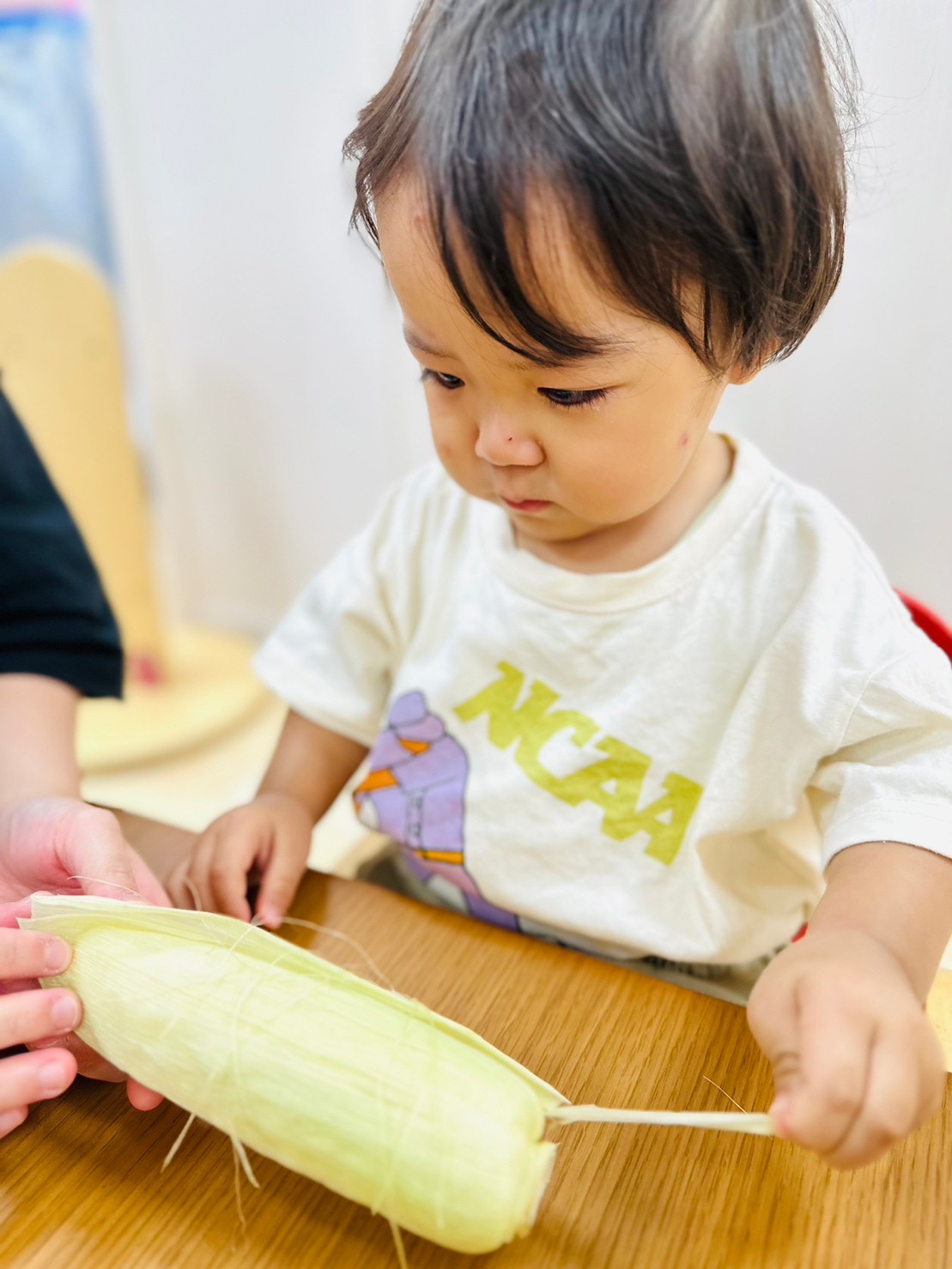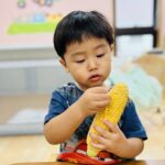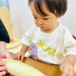 お給食で食べるとうもろこし、みんなで皮剥きをしましたよ😊