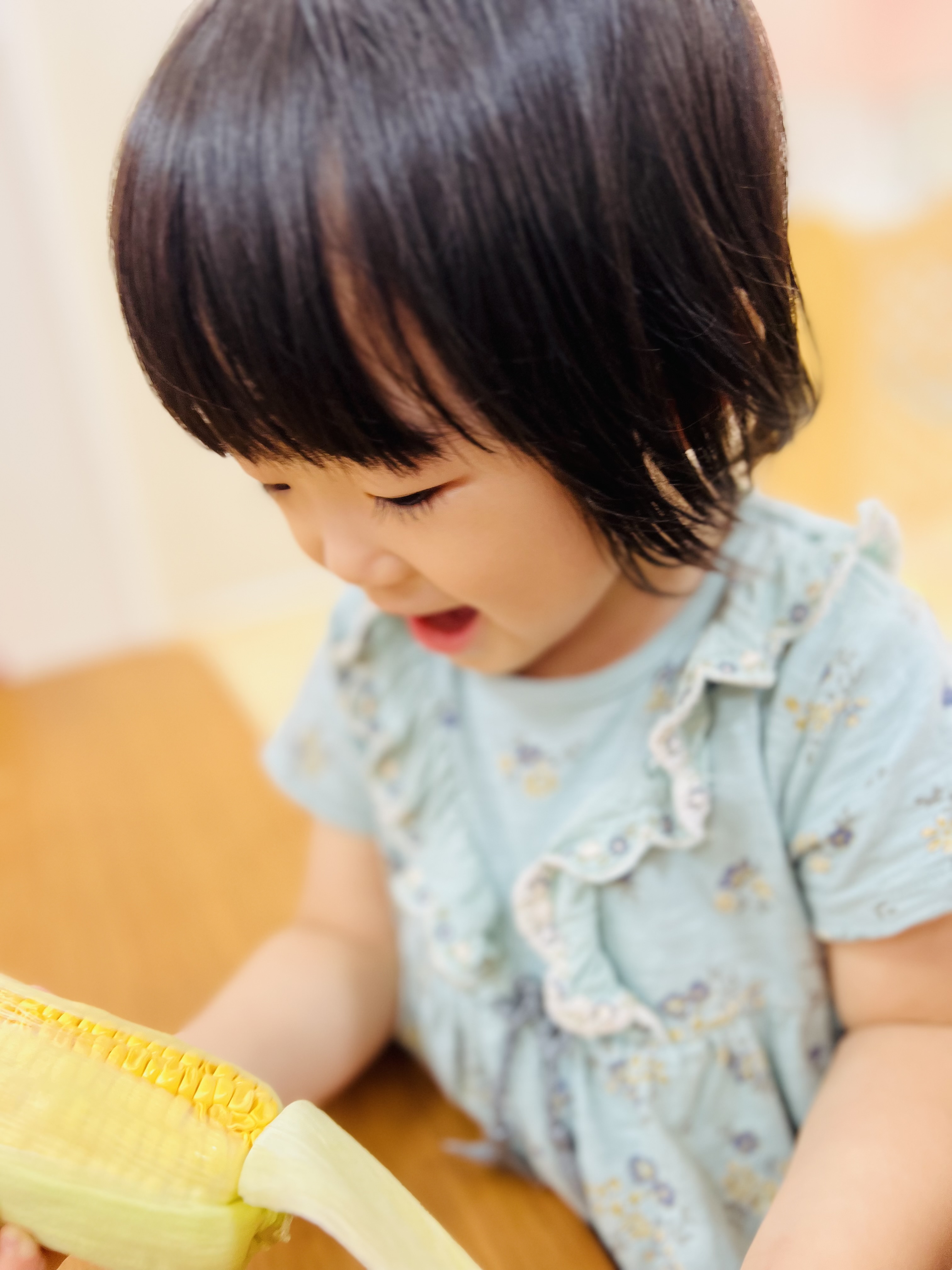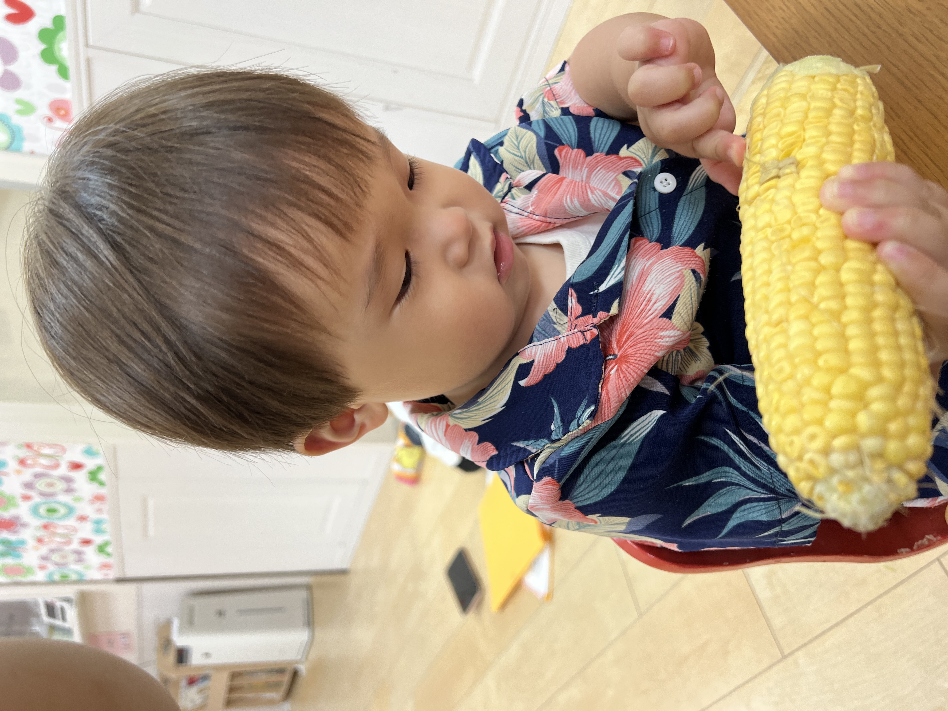 とうもろこし、そのままかじりつきたいと泣き崩れる姿も可愛いかったです😁❤️