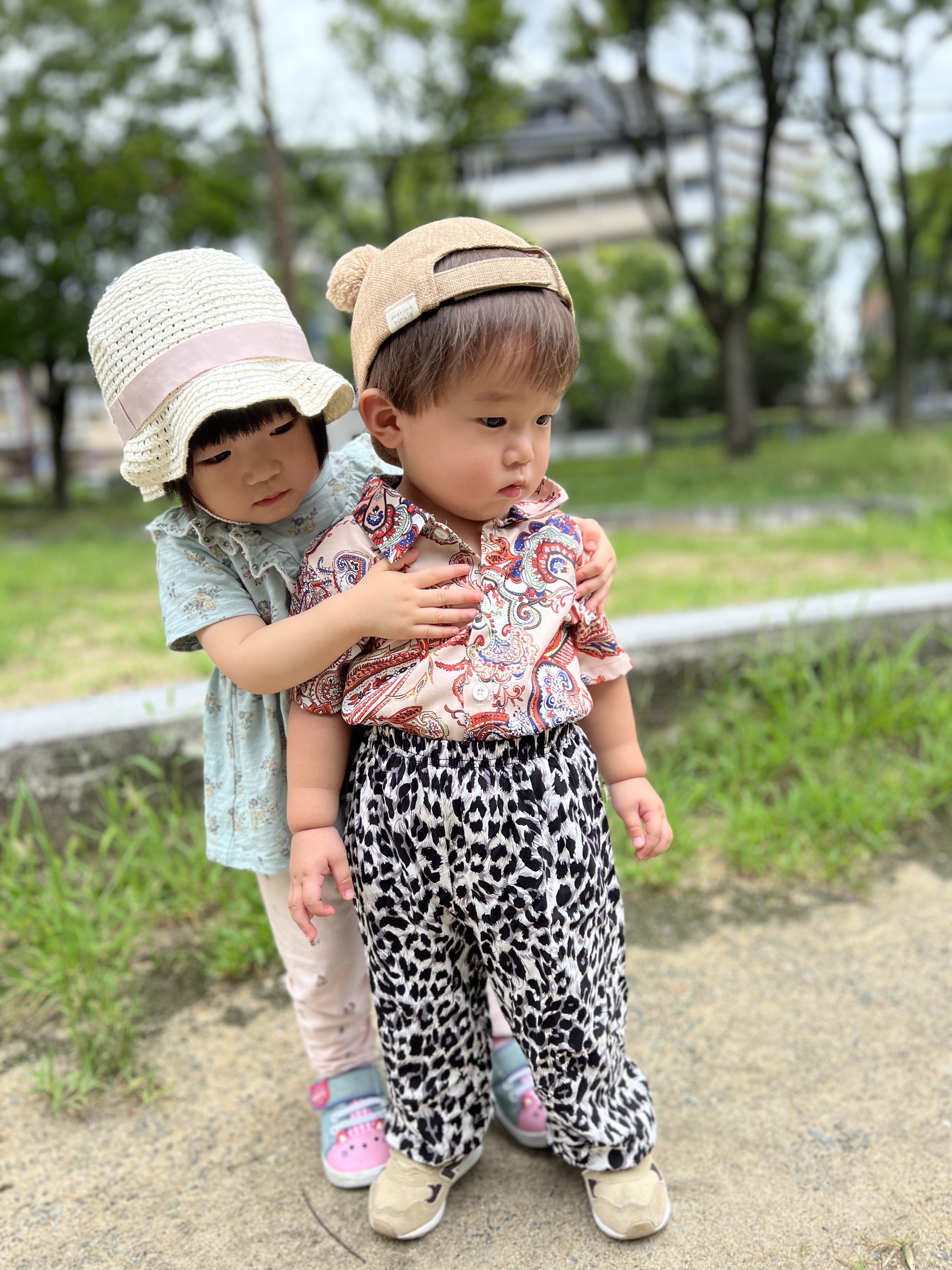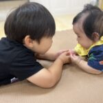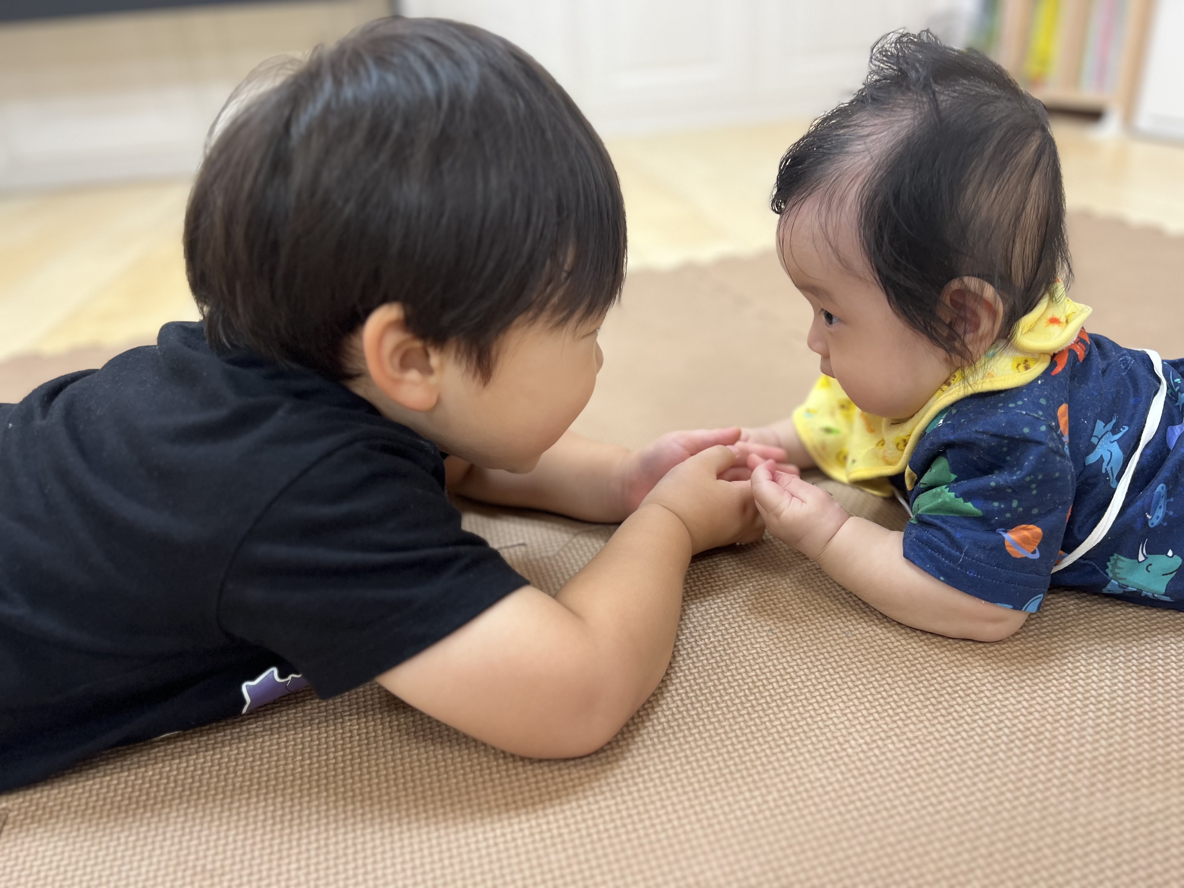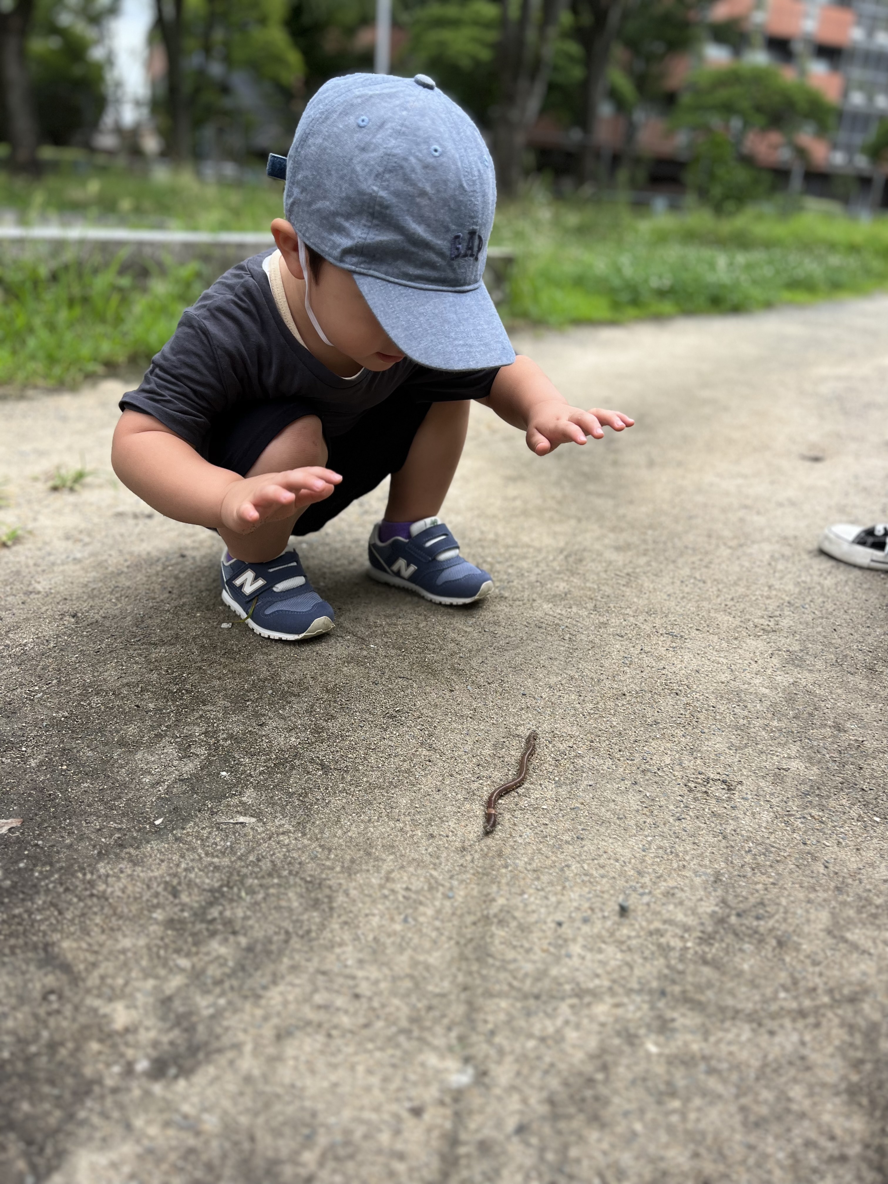 初めてのミミズに驚きくっついて観察しました😁仲良しなお友達、お互い不安な時は支え合ってます❤️