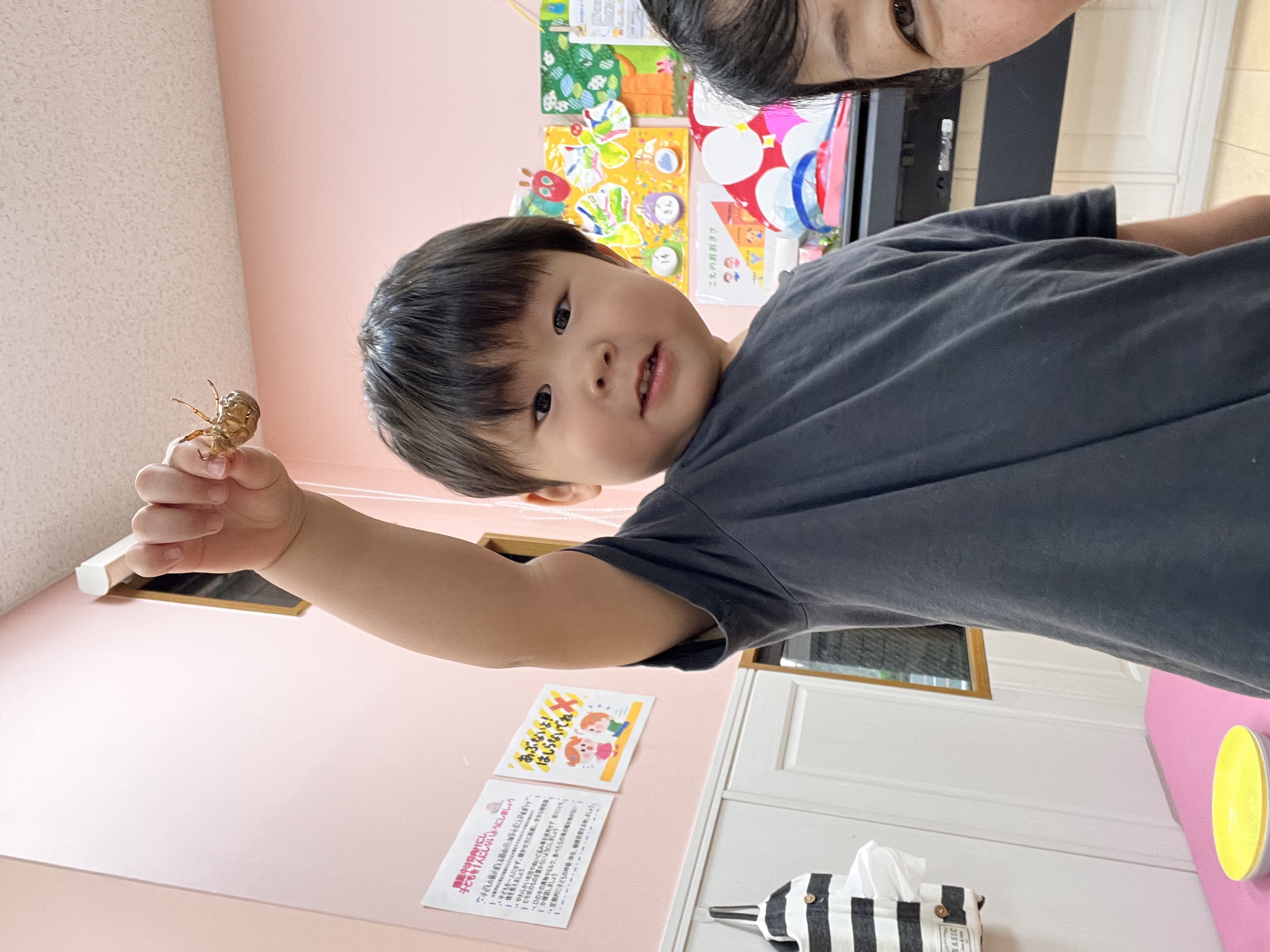 セミの抜け殻と一緒に保育園へ帰ってニコニコ嬉しそうでした😊