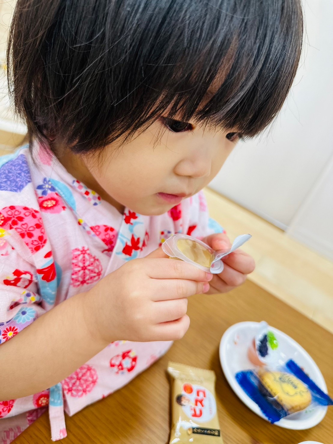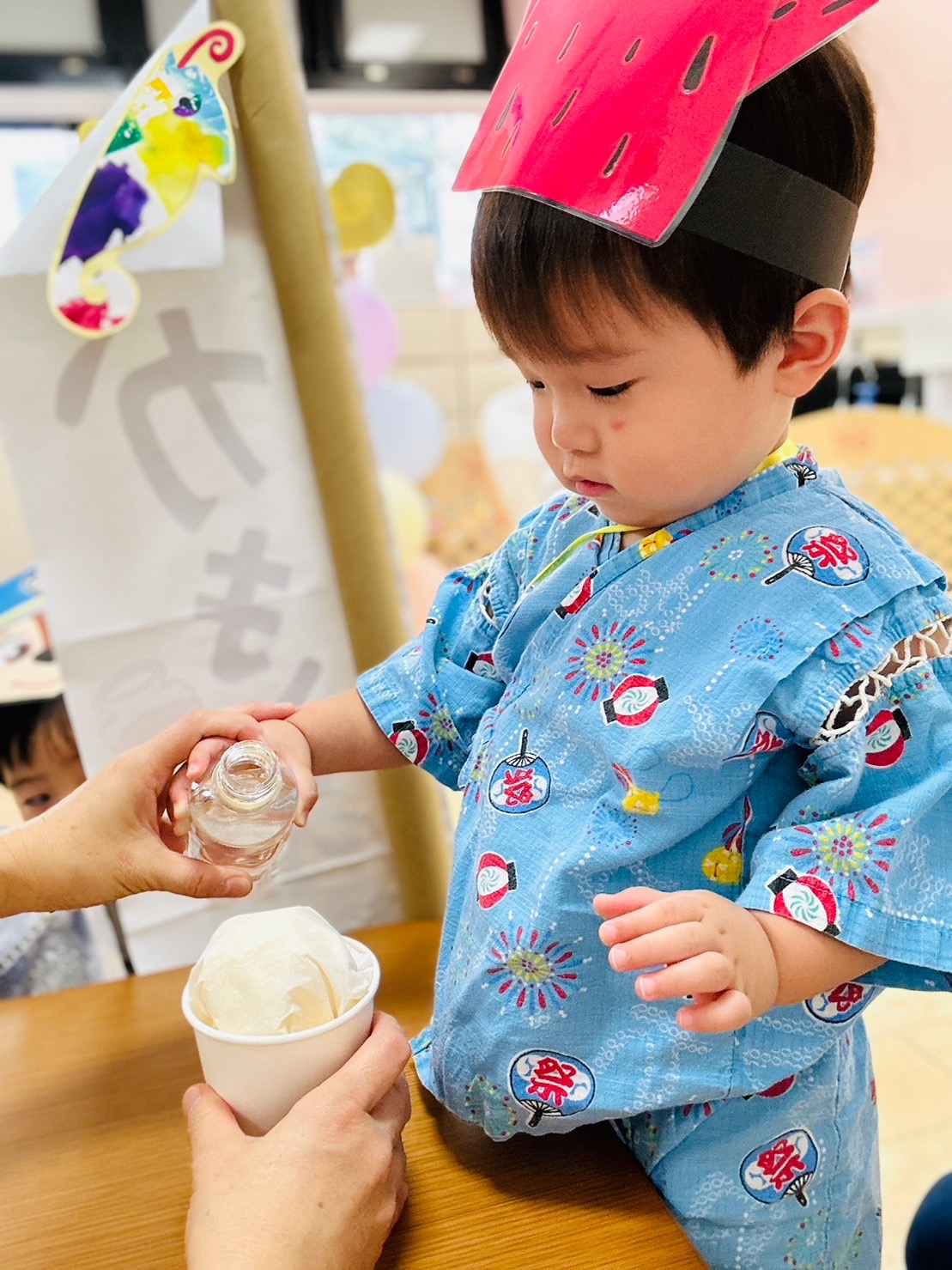 夏祭りのおやつタイムも笑顔いっぱいでしたよ