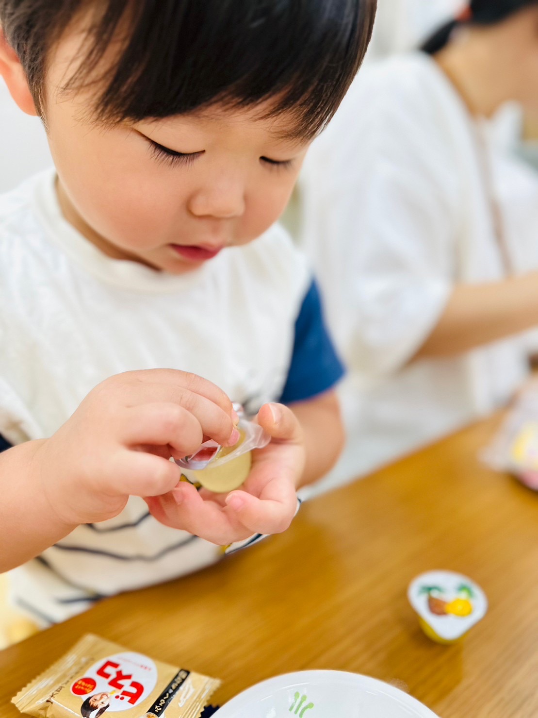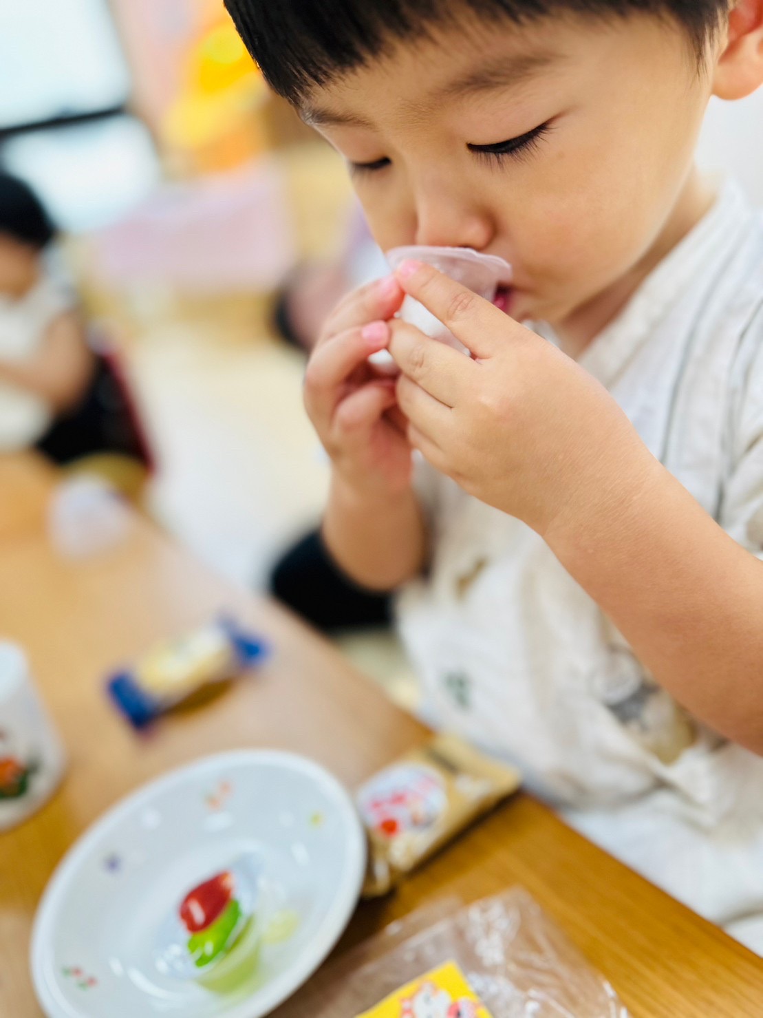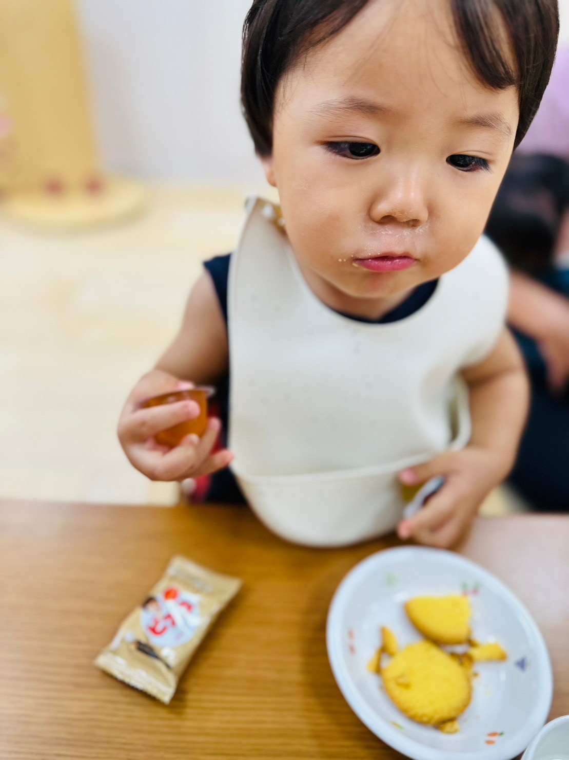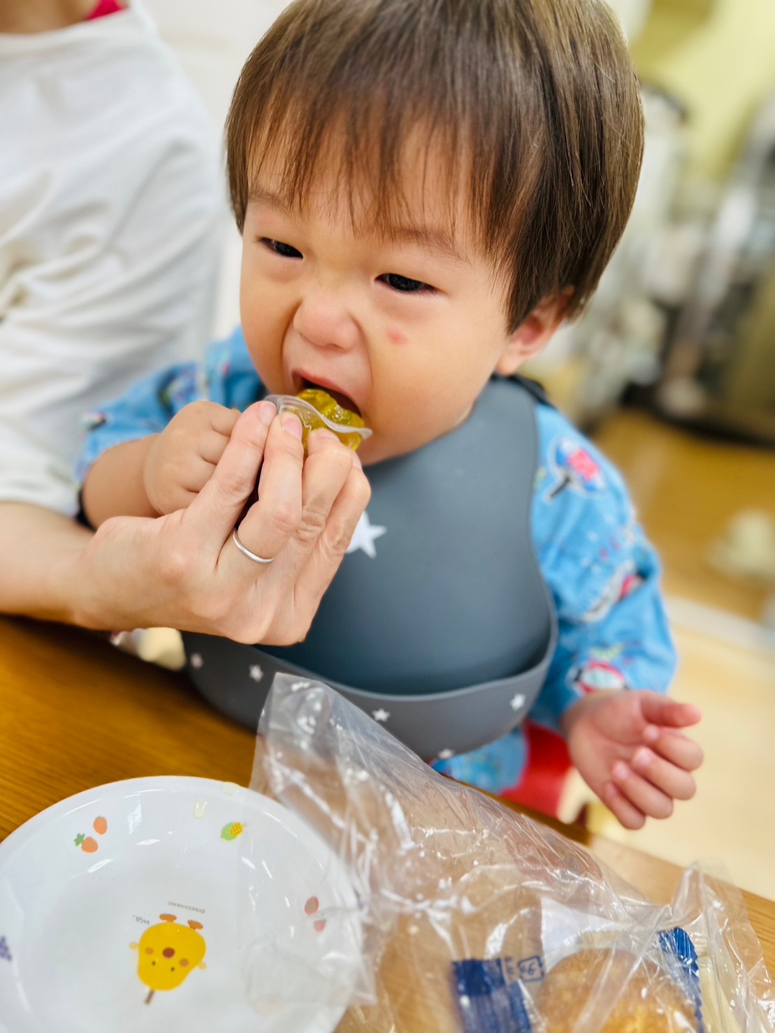 1.2歳児のお友達も美味しそうにおやつをいただきました♫
