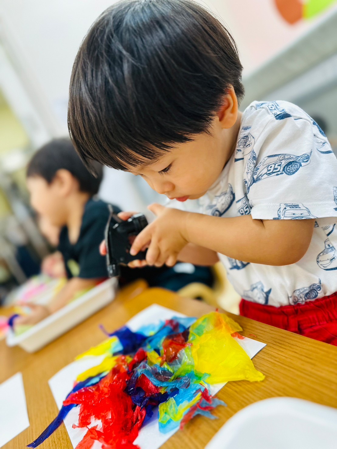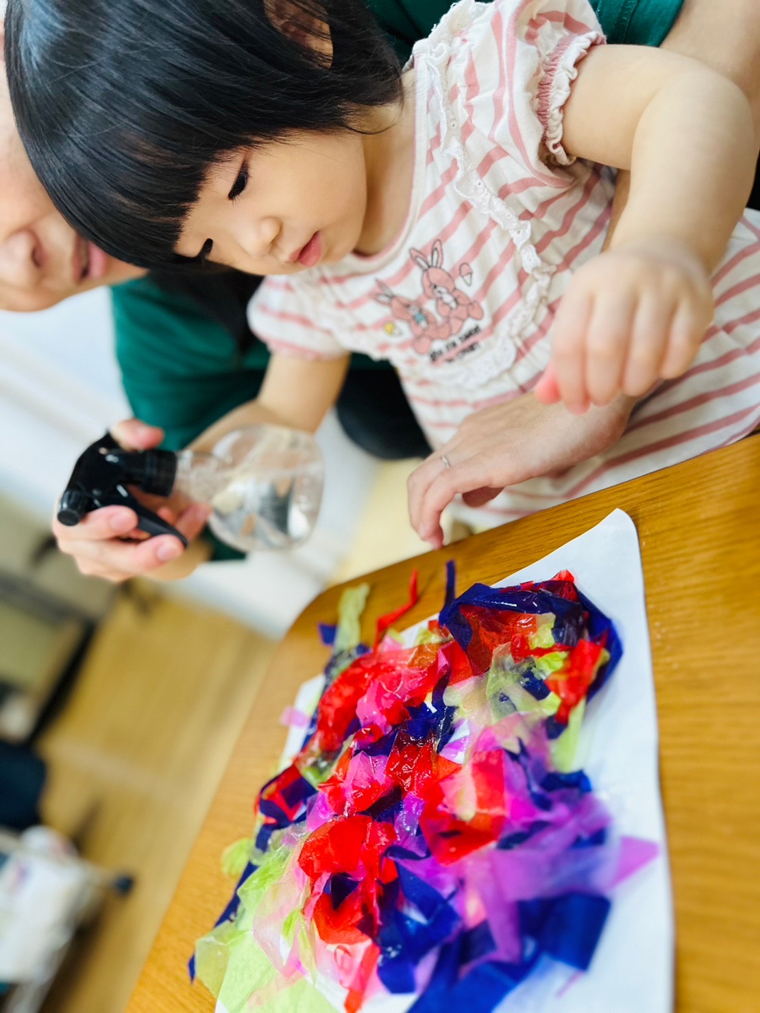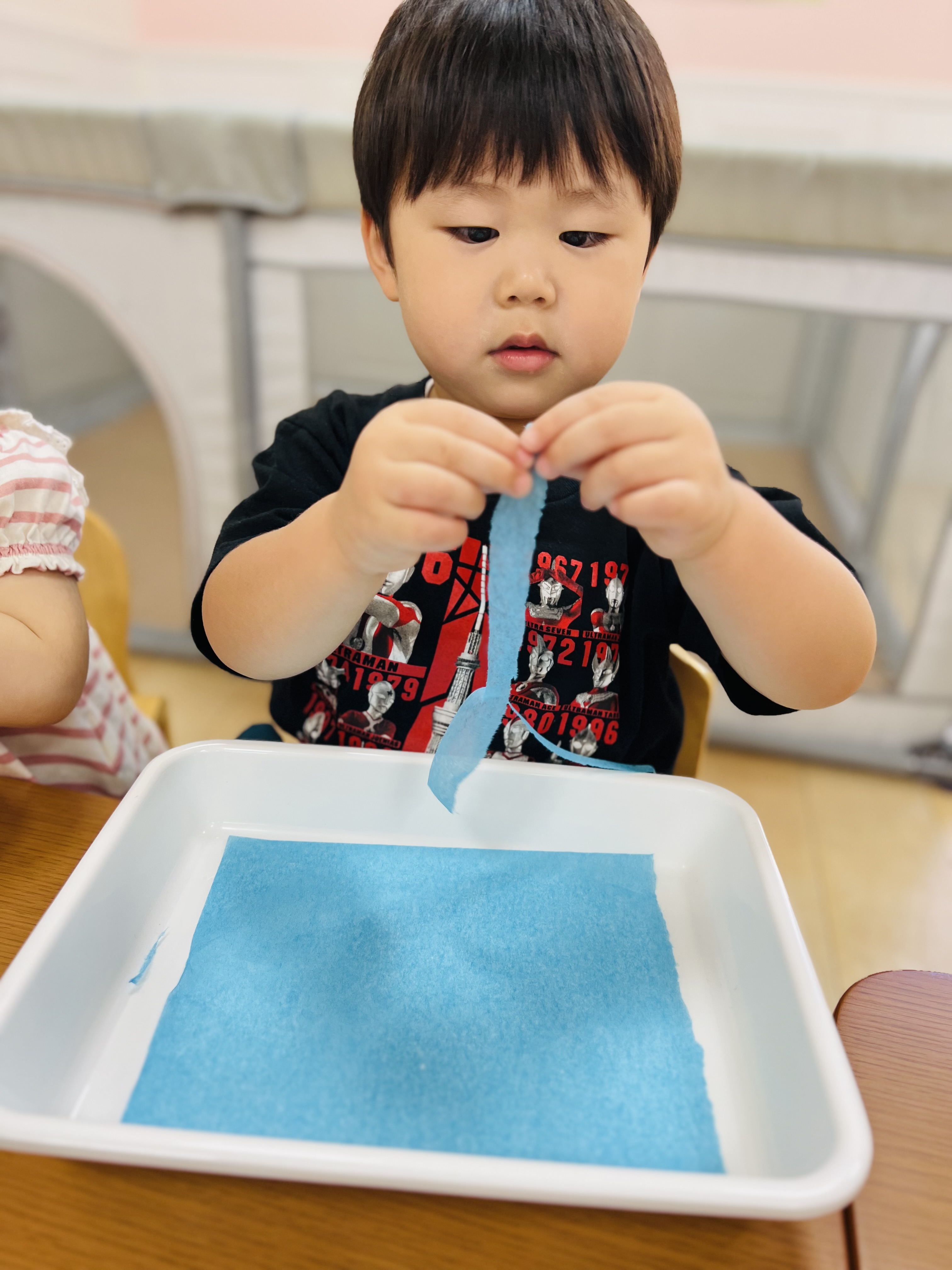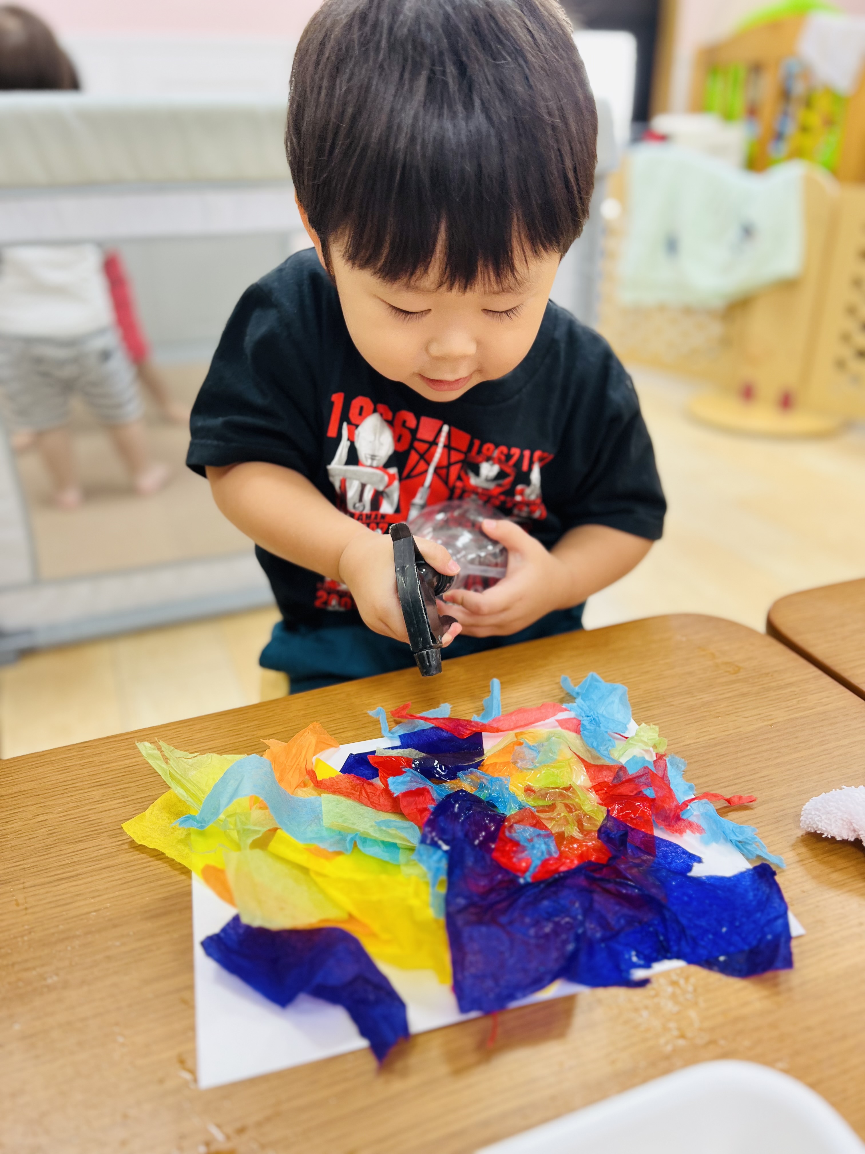花紙をちぎって、紙の色染めをしましたよ😊
