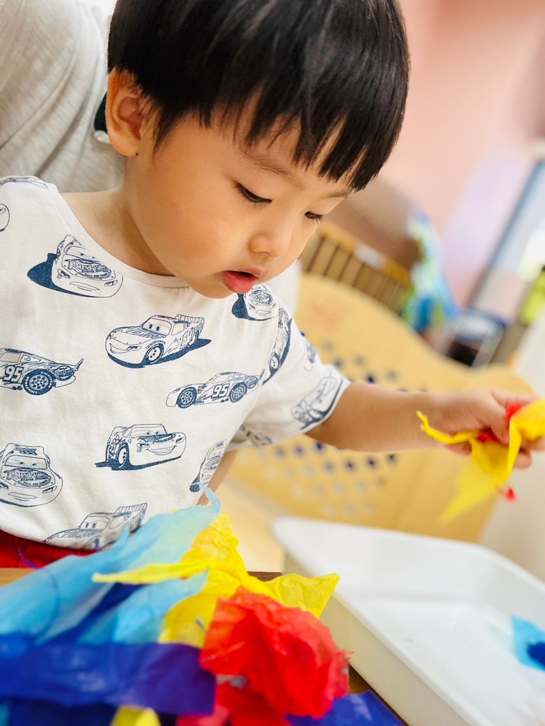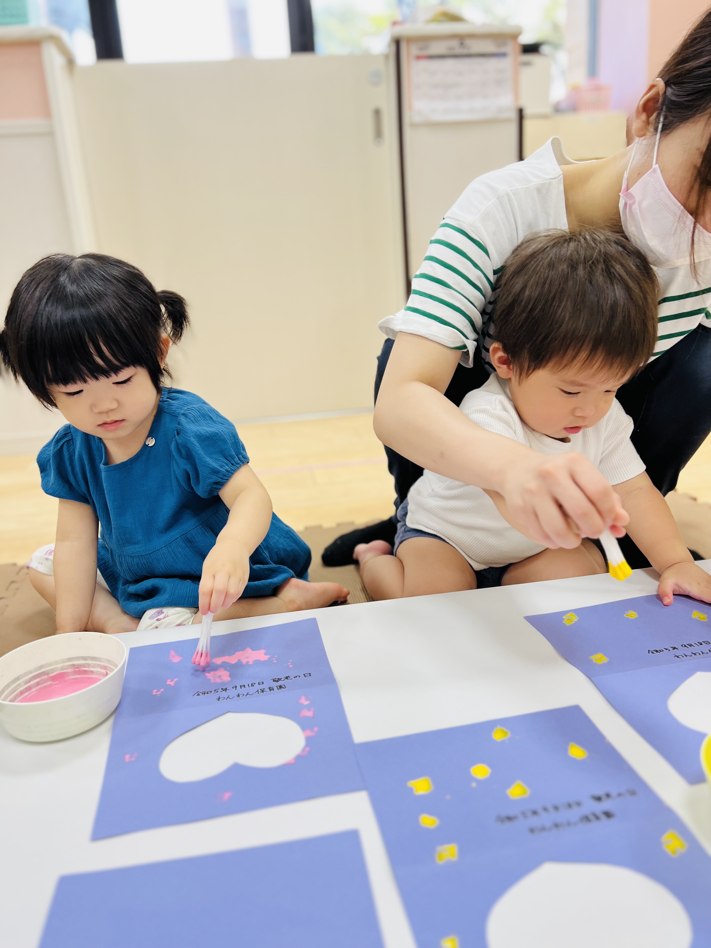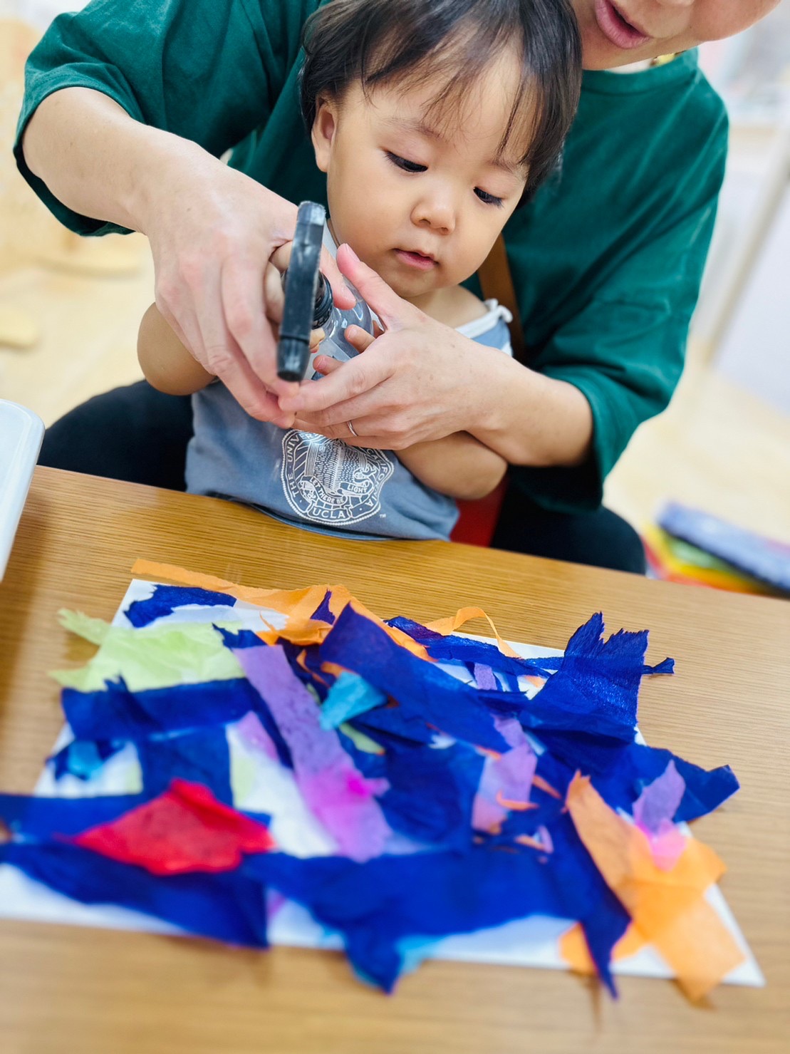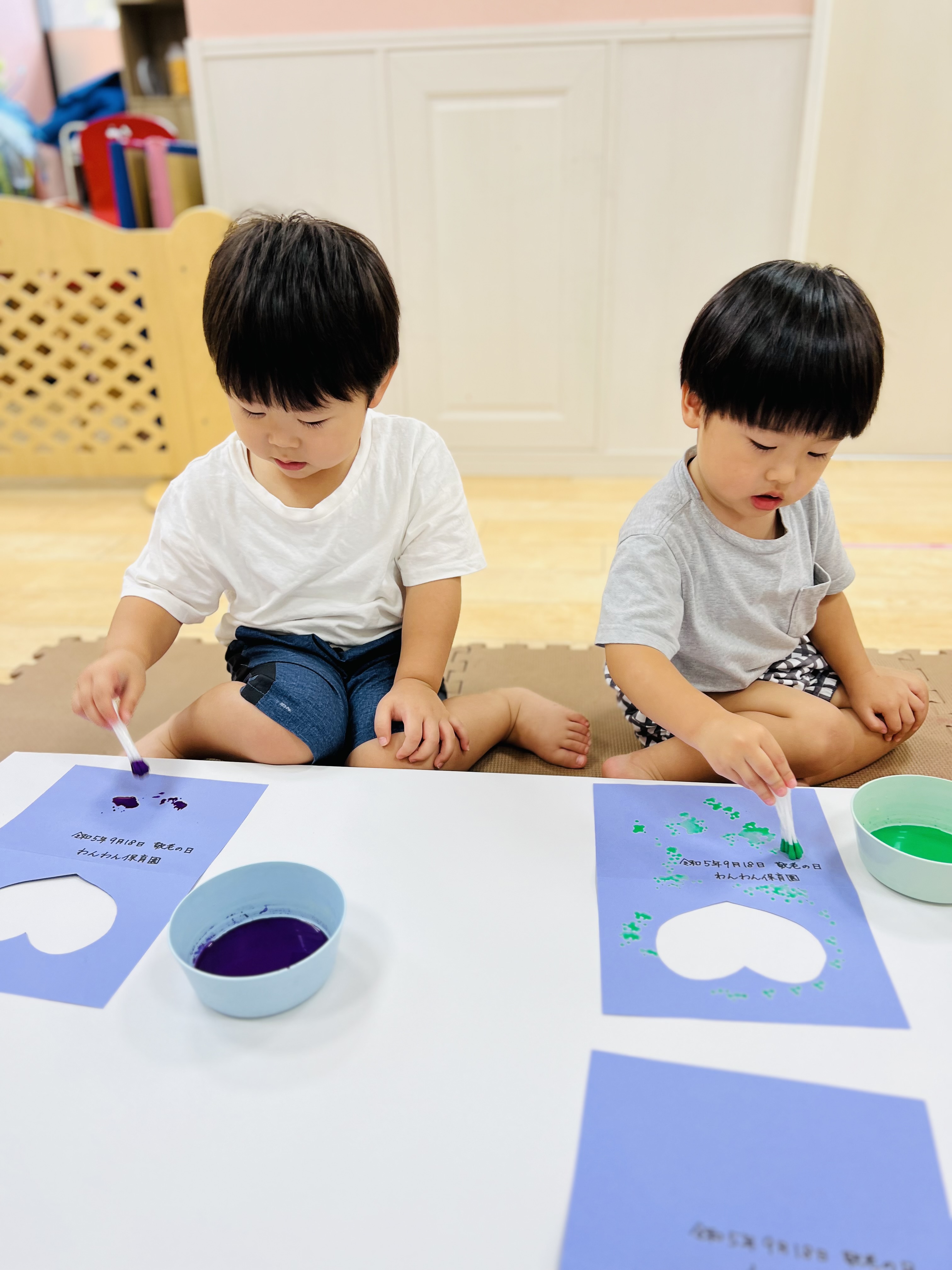花紙をちぎって、紙の色染めをしましたよ😊
