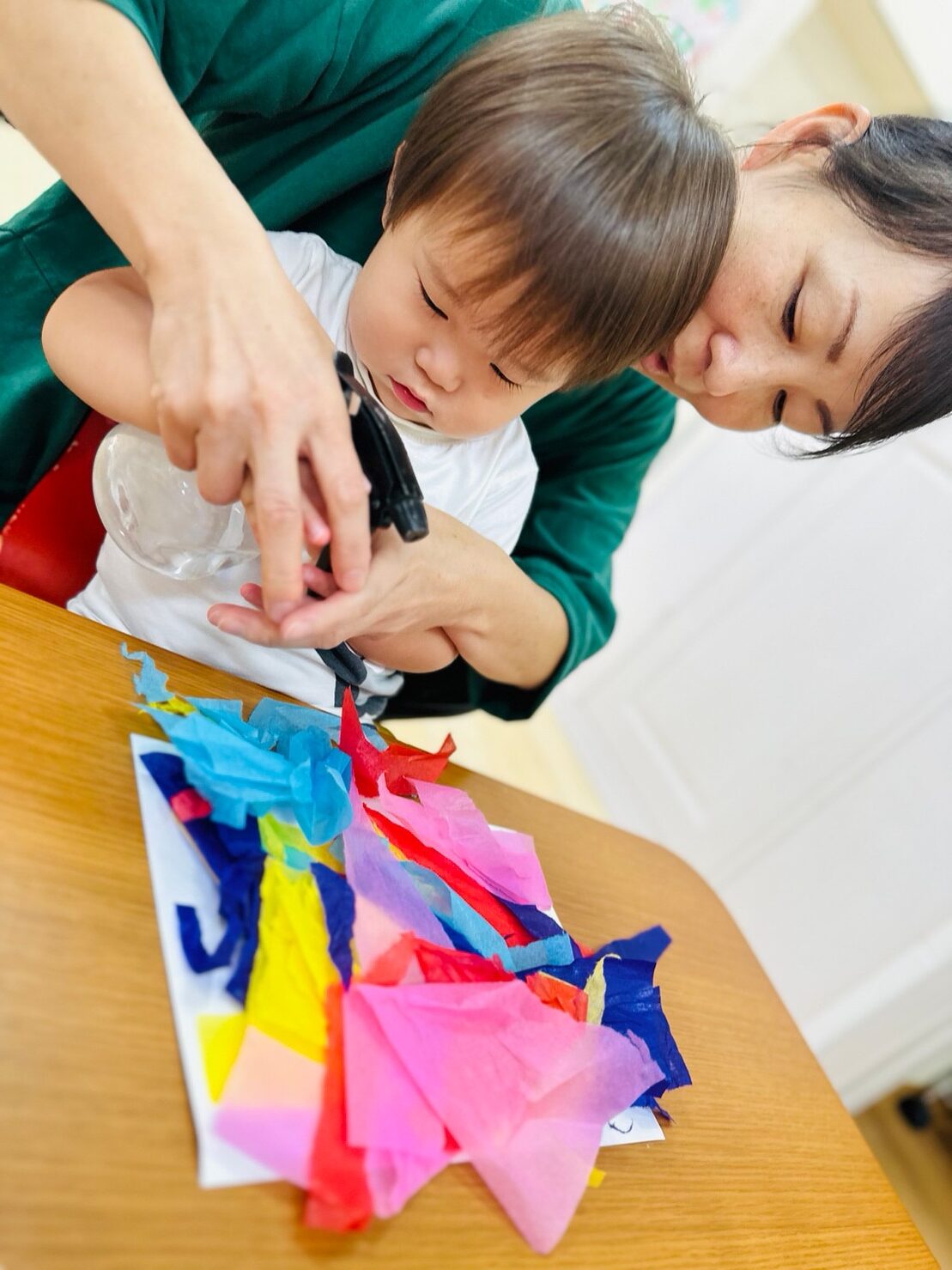 霧吹きで水をかけて、色が染まるのを待ちました😊
