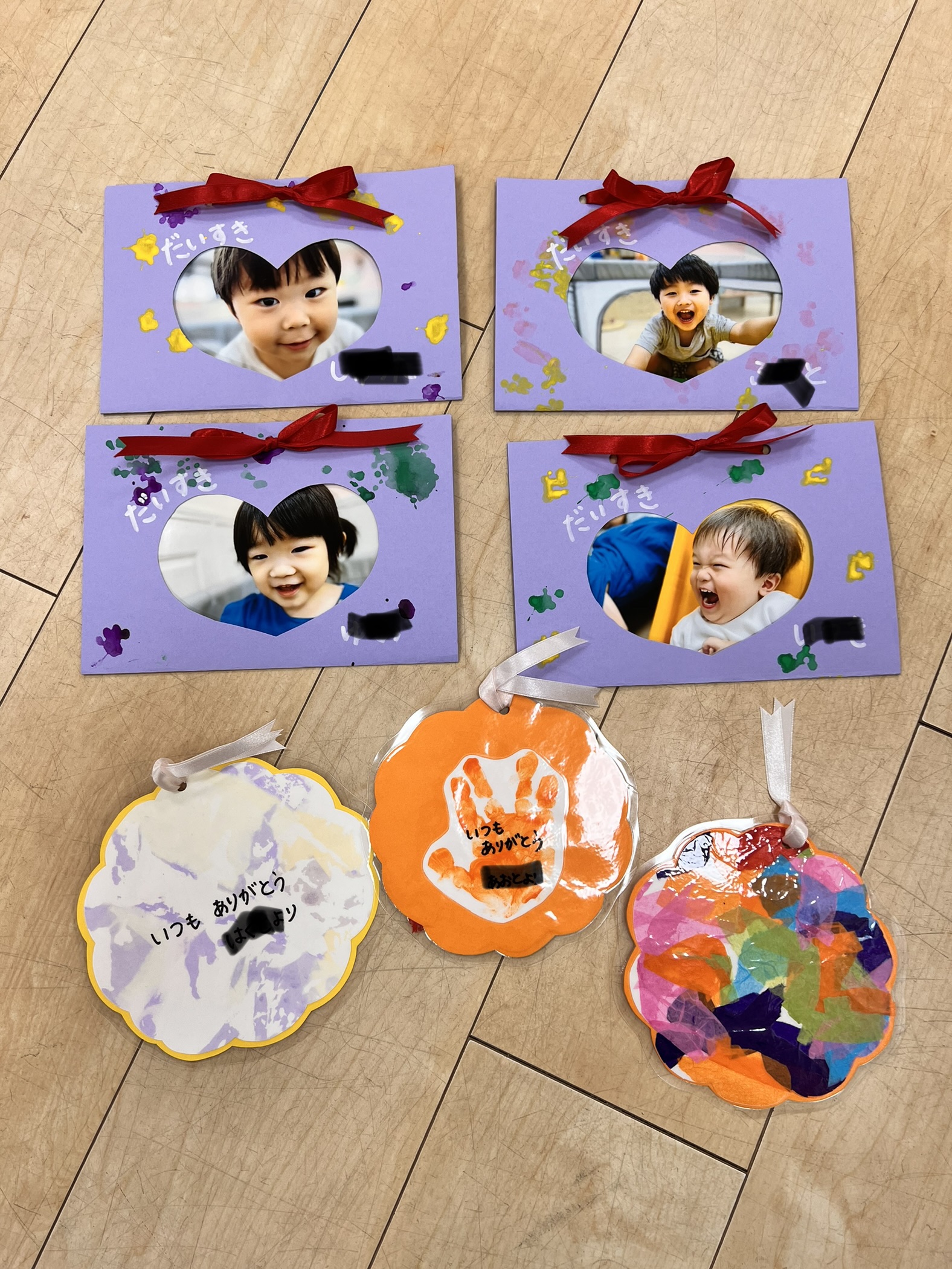 写真飾りには綿棒スタンプで可愛い小柄花を咲かせましたよ💐