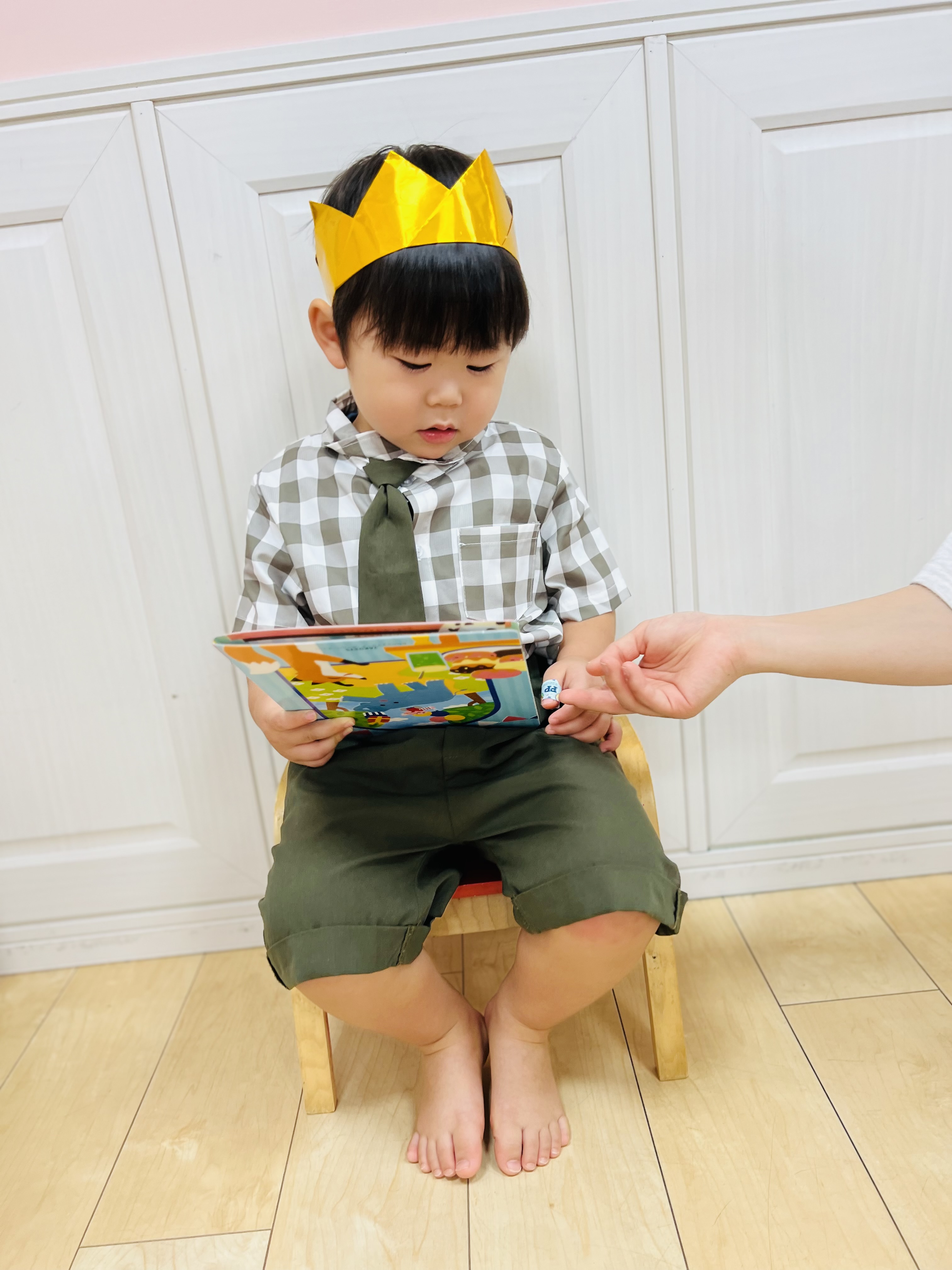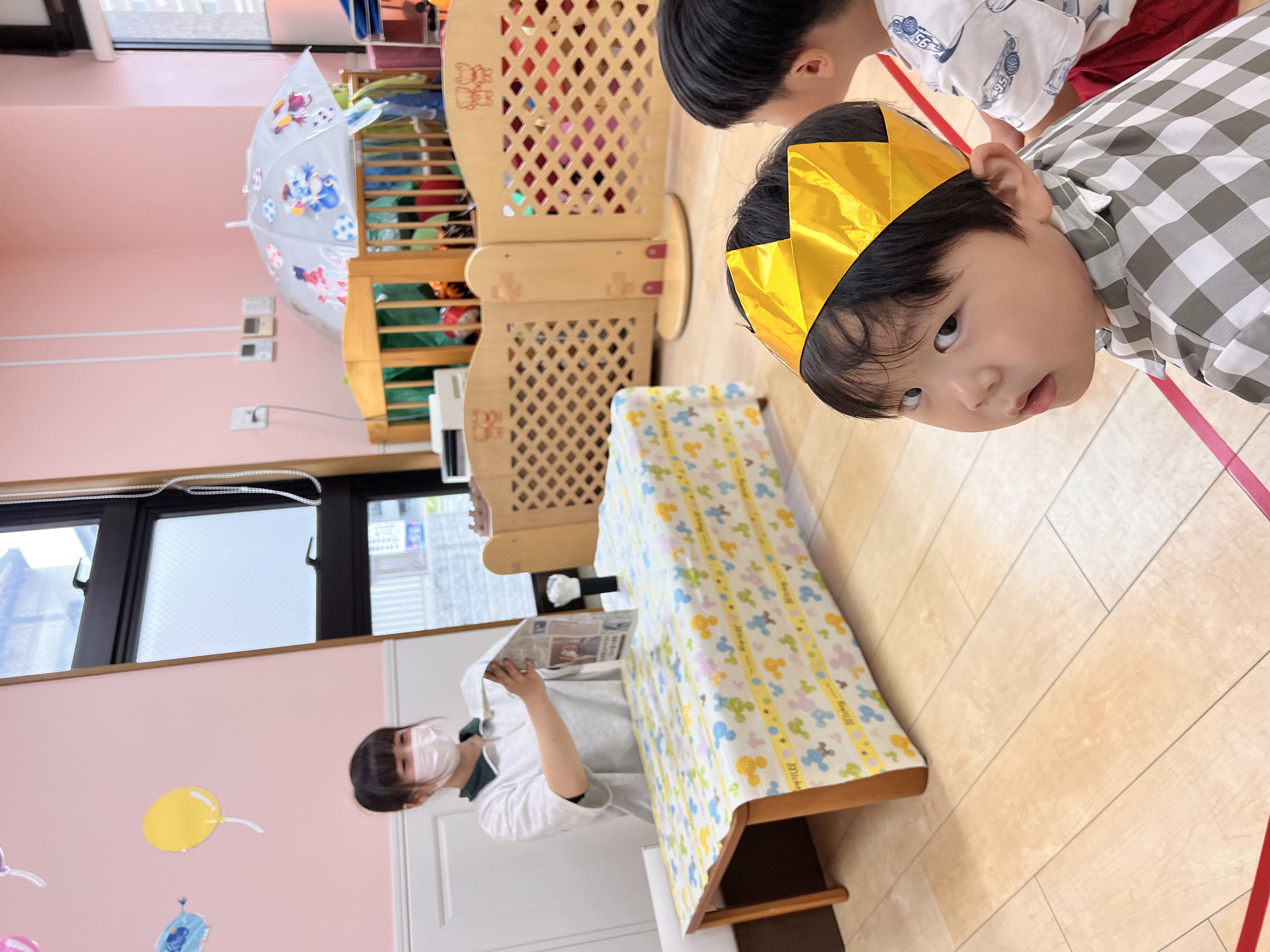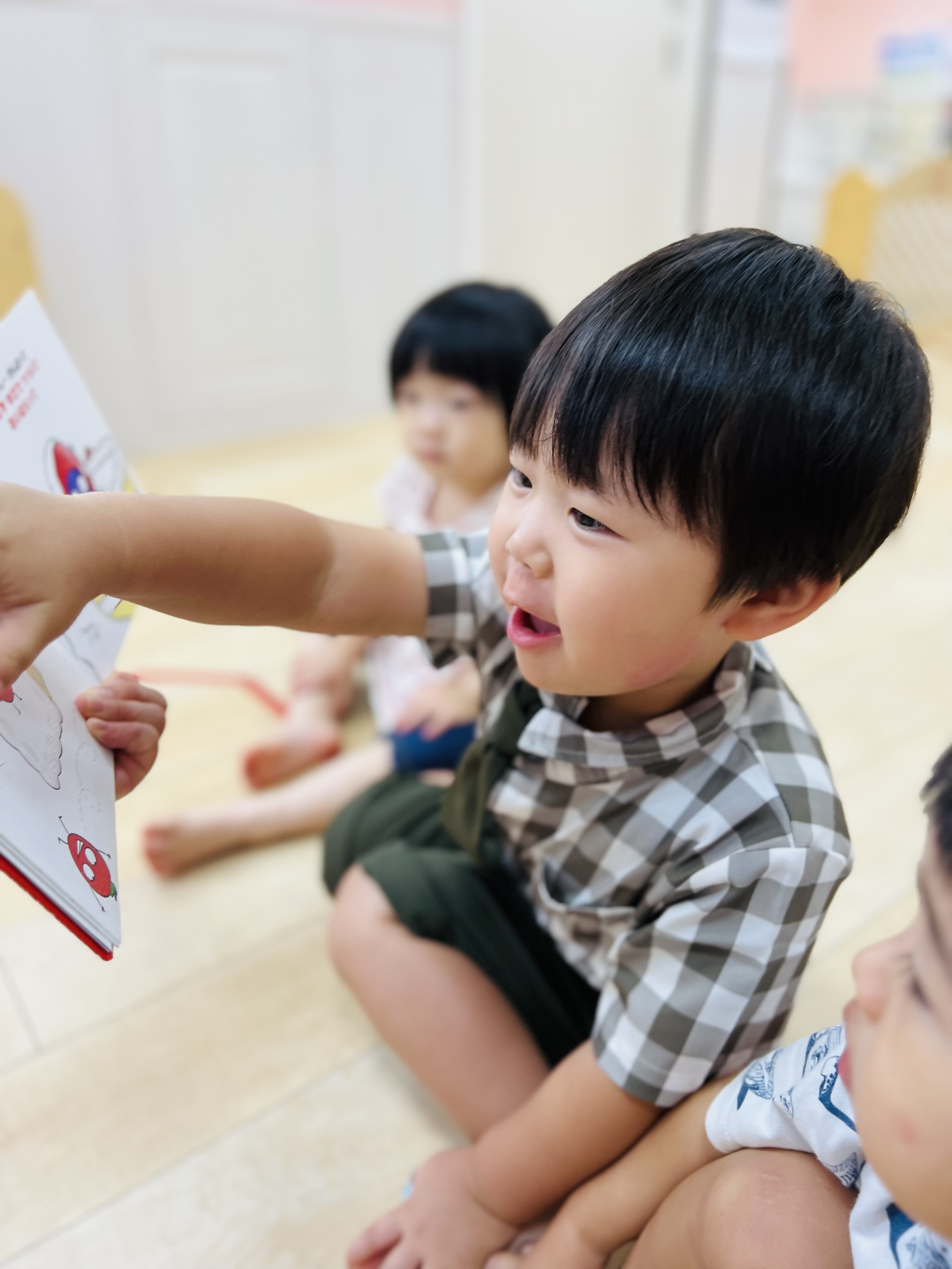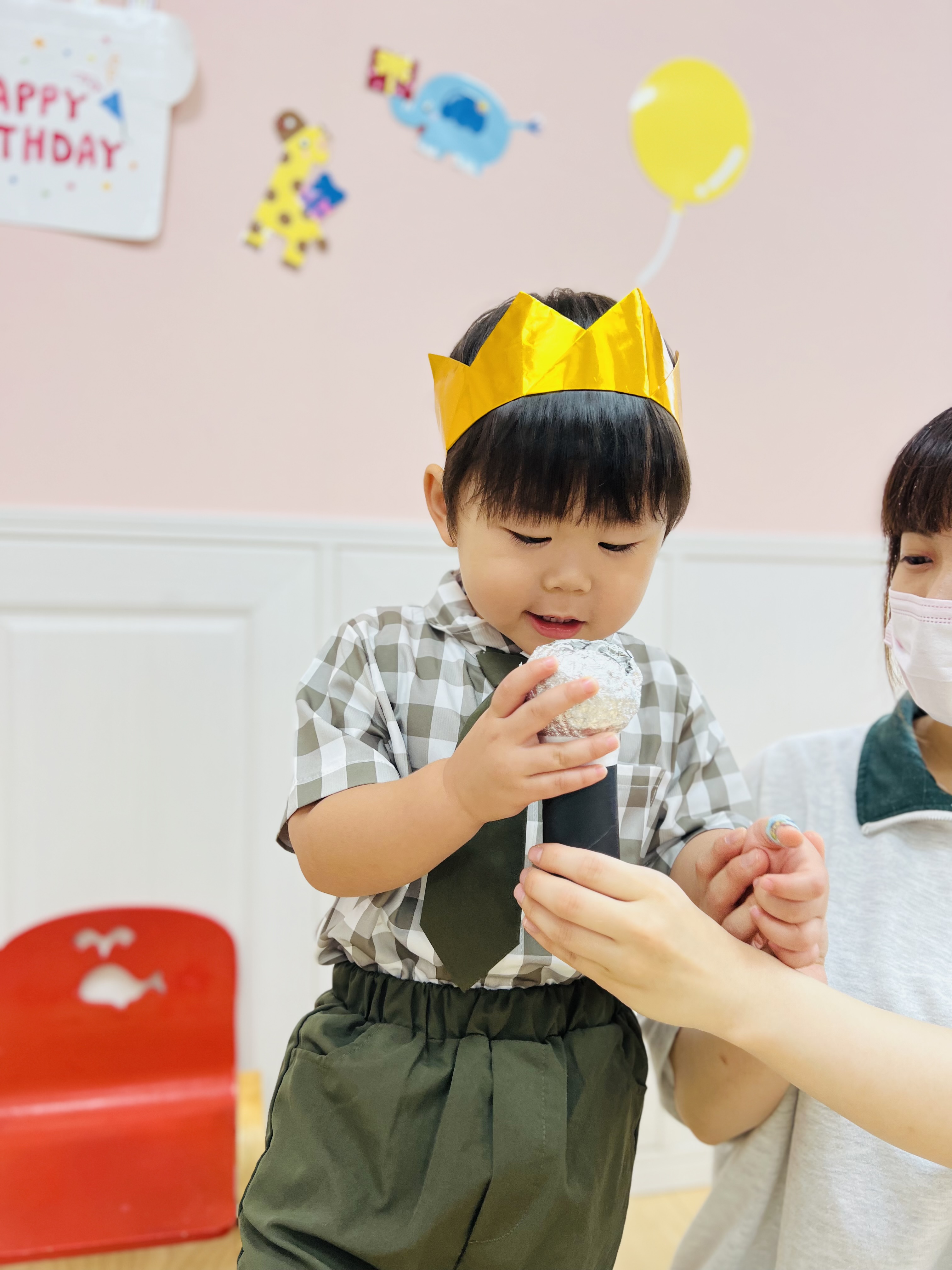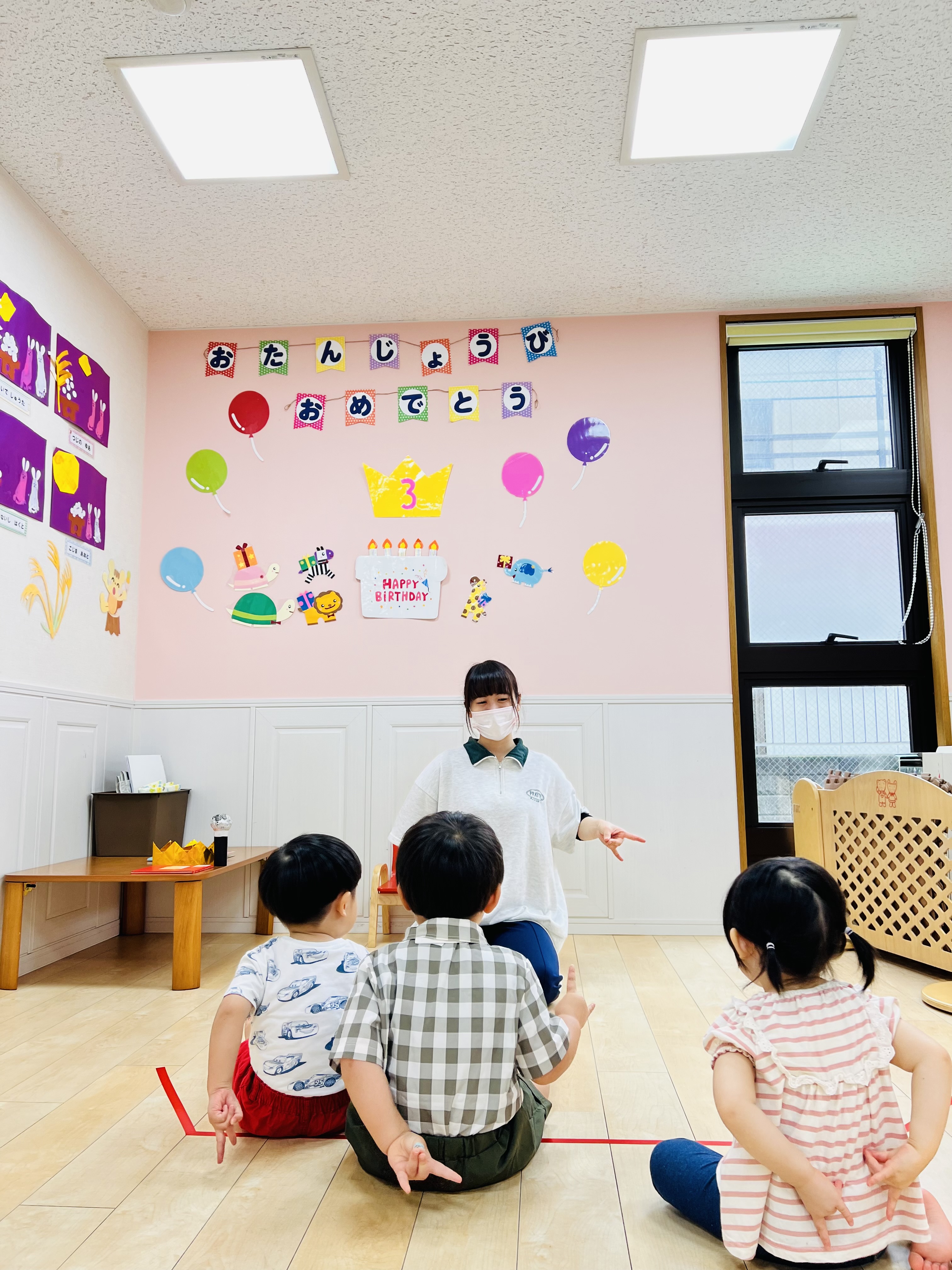 誕生日の絵本、みんなでロウソクを吹き消して誕生会がスタートしましたよ🎵