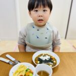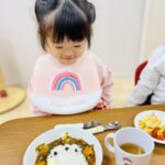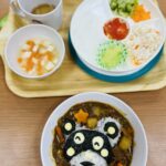可愛いキャラクターのカレーライスになかなか食べ始めれないお友達😊