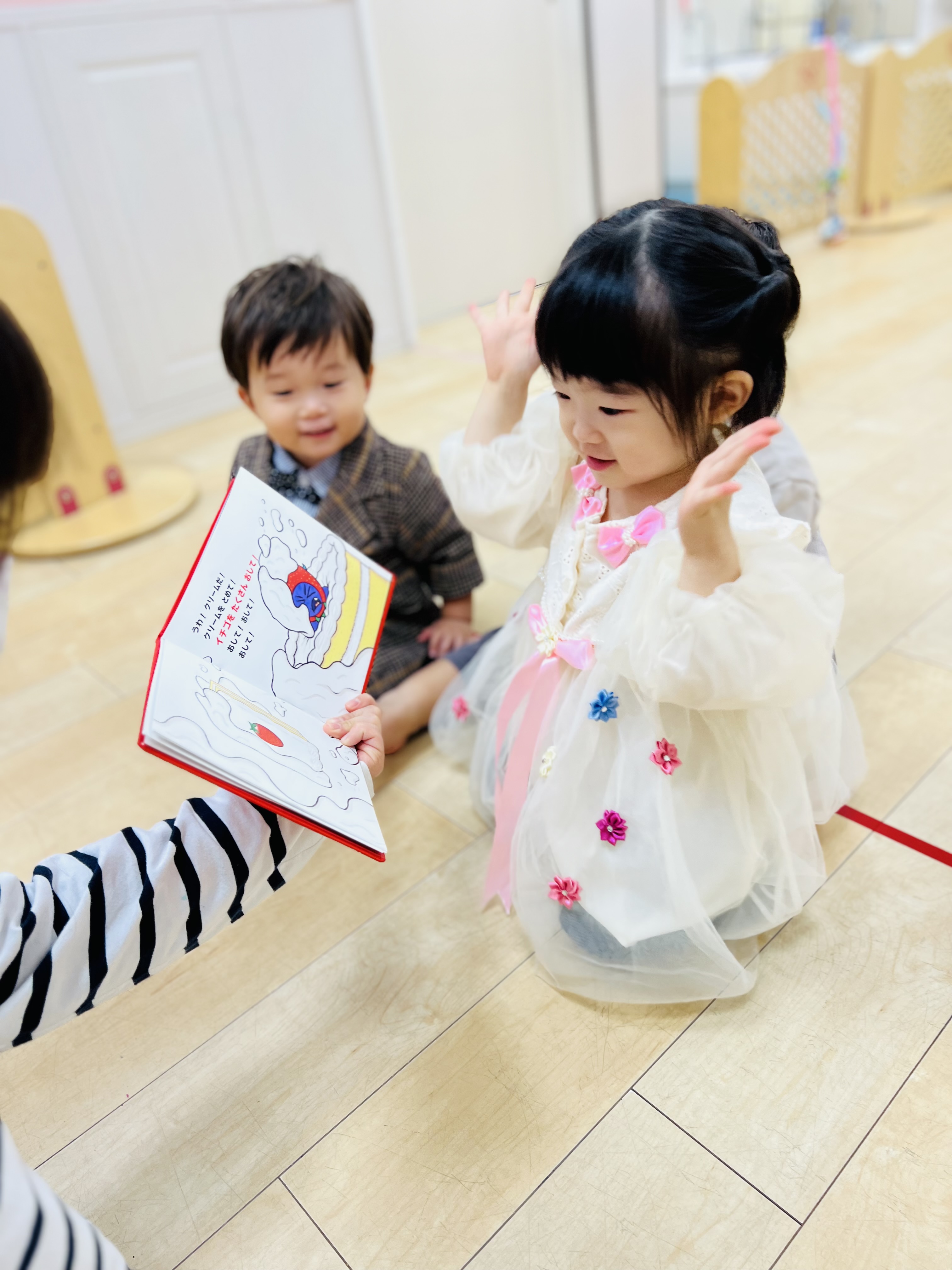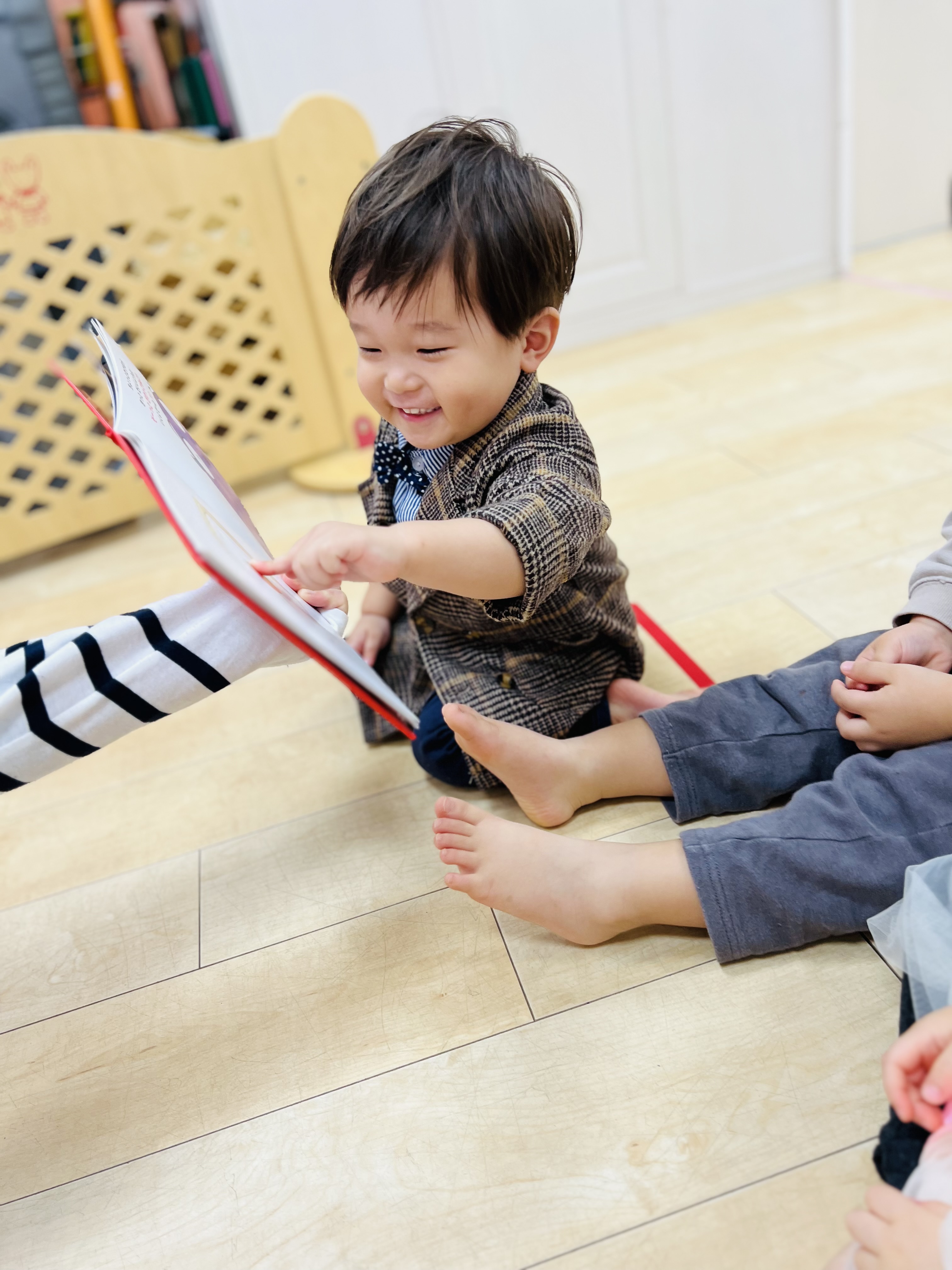 お誕生日ケーキの絵本を読んでもらいニコニコ笑顔に😊