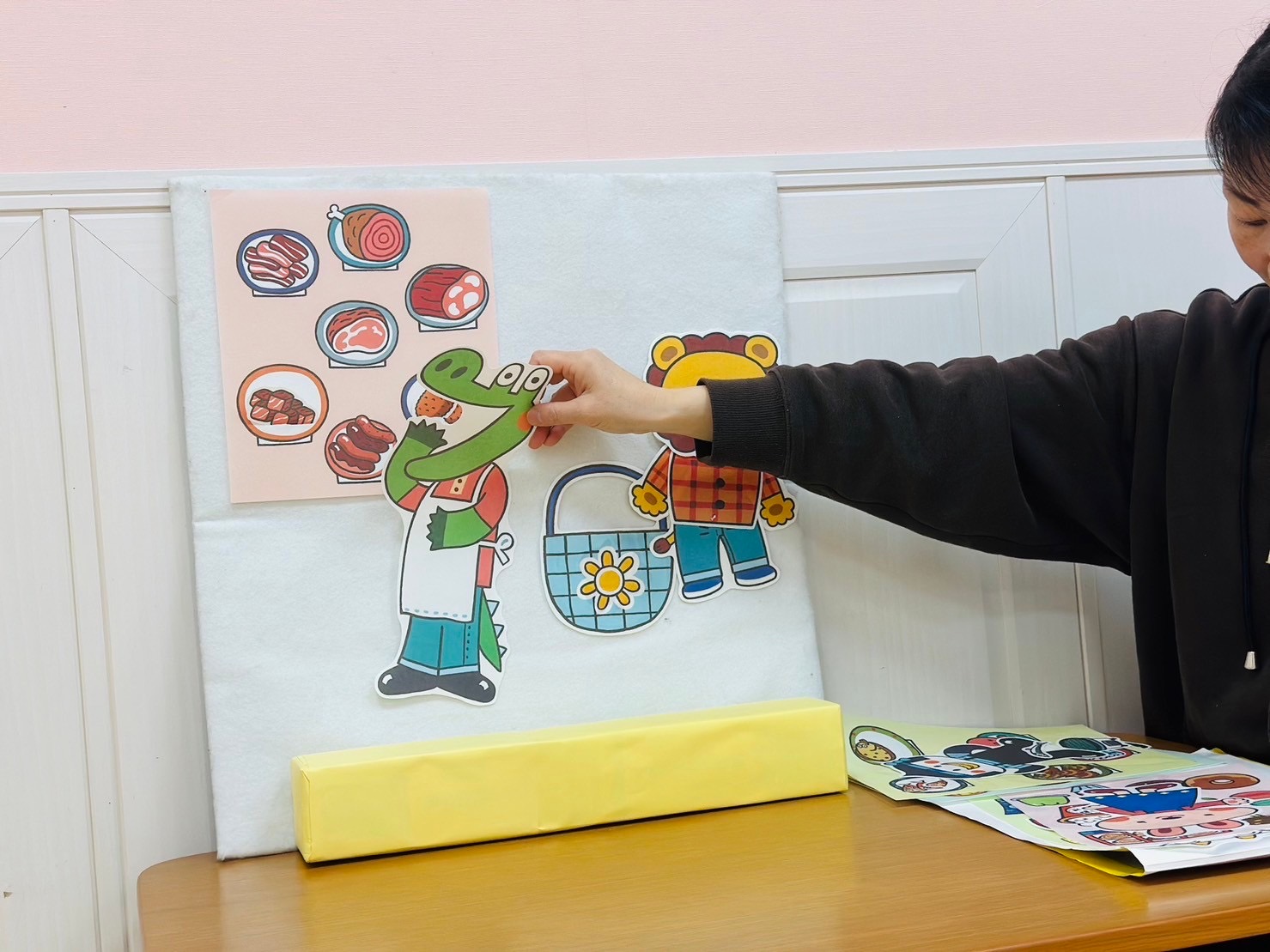 先生からの出し物はパネルシアターでライオンくんのお買い物のお話を見ました😊